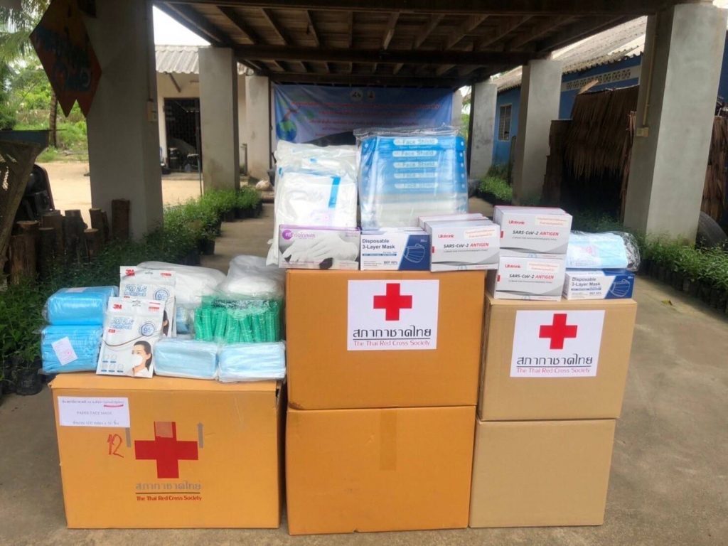 วันที่ 5 ตุลาคม 2564 นางวิภาดา ทิพญพงศ์ธาดา นายกเหล่ากาชาดจังหวัดพังงา มอบหมายให้นางสาวกิรณาแก้วเขียว กรรมการเหล่ากาชาดจังหวัดพังงา พร้อมด้วยสมาชิกเหล่ากาชาดจังหวัดพังงา โดยมีนางสาวเสาวนีย์เสาวกูล หัวหน้าสถานีกาชาดที่ 14 พังงา เฉลิมเกียรติ ร่วมมอบเวชภัณฑ์และสิ่งของเครื่องใช้ต่างๆ ที่จะนำมาใช้ในการเฝ้าระวัง ป้องกัน และตรวจค้นหาเชิงรุกเพื่อสนับสนุนการทำงานของแกนนำชุมชน บ้านน้ำเค็มเพื่อเฝ้าระวังป้องกันไม่ให้เกิดการแพร่ระบาดของโรคโควิด-19 ภายในชุมชนและชุมชนใกล้เคียง ณ บ้านทับตะวัน ต.บางม่วง อ.ตะกั่วป่า จ.พังงา