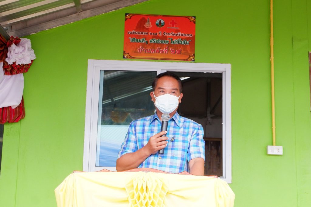 วันที่ 6 ตุลาคม 2564 นางมัลลิกา พุฒิชาติ นายกเหล่ากาชาดจังหวัดศรีสะเกษ พร้อมด้วยเจ้าหน้าที่เหล่ากาชาดจังหวัดศรีสะเกษ ร่วมเป็นเกียรติในพิธีมอบบ้านตามโครงการสร้าง/ซ่อมบ้านให้ผู้ด้อยโอกาส ผู้ยากไร้ และผู้ยากจน “เฮือนดีๆ ศรีสะเกษ ไม่ทิ้งกัน” เนื่องในงานเฉลิมฉลอง 238 ปี จังหวัดศรีสะเกษ ในพื้นที่อำเภอโพธิ์ศรีสุวรรณ จังหวัดศรีสะเกษ จำนวน 5 หลัง ดังนี้
