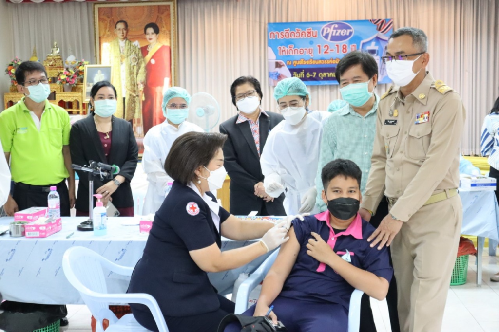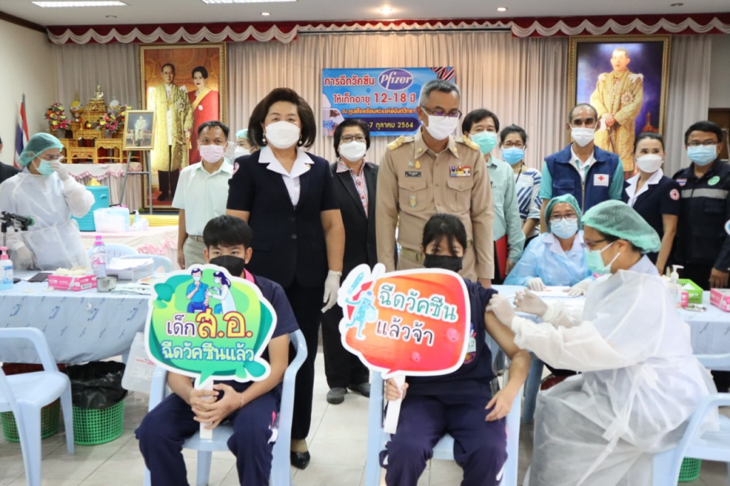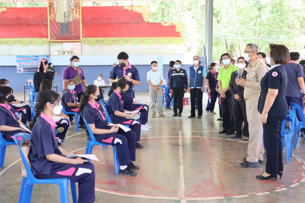วันที่ 6 ตุลาคม 2564 นางกนกพร พรรณเทวี นายกเหล่ากาชาดจังหวัดสุโขทัย พร้อมด้วย นายอำเภอสวรรคโลก นายกกิ่งกาชาดอำเภอสวรรคโลก กรรมการกิ่งกาชาดอำเภอสวรรคโลก ลงพื้นที่ตรวจเยี่ยมและให้กำลังใจการฉีดวัคซีนไฟเซอร์ ให้กับนักเรียน ‘สร้างเกราะป้องกันด้วยวัคซีน เด็กปลอดภัย เรียนอุ่นใจ ต้อนรับเปิดเทอม” โดยมีผู้อำนวยการโรงเรียนสวรรค์อนันต์วิทยา คณะครูโรงเรียนสวรรค์อนันต์วิทยา ผู้อำนวยการโรงพยาบาลสวรรคโลกและสาธารณสุขอำเภอสวรรคโลก ให้การต้อนรับนายวิรุฬ พรรณเทวี ผู้ว่าราชการจังหวัดสุโขทัย ในการเยี่ยมครั้งนี้ด้วย ณ โรงเรียนสวรรค์อนันต์วิทยา อำเภอสวรรคโลก จังหวัดสุโขทัย