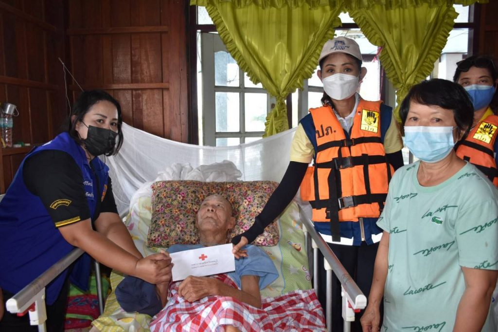 วันที่ 7 ตุลาคม 2564 นางวัชราภรณ์ รุ่งสาคร นายกเหล่ากาชาดจังหวัดลพบุรี พร้อมด้วยนางฐิติรัตน แวงชิน รองนายกเหล่ากาชาดจังหวัดลพบุรี คณะกรรมการฯ พัฒนาสังคมและความมั่นคงของมนุษย์จังหวัดลพบุรี ปลัดอาวุโสอำเภอบ้านหมี่ ปลัดอำเภอบ้านหมี่ และหน่วยงานที่เกี่ยวข้อง ลงพื้นที่เยี่ยมผู้ป่วยติดเตียง ราย นายกะวี ขำสกุล อายุ 83 ปี บ้านเลขที่ 49/1 หมู่ 2 ตำบลพุคา อำเภอบ้านหมี่ จังหวัดลพบุรี ในการนี้ เหล่ากาชาดจังหวัดลพบุรีมอบเงินช่วยเหลือจำนวน 2,000 บาท พร้อมชุดธารน้ำใจจำนวน 1 ชุด สำนักงานพัฒนาสังคมและความมั่นคงของมนุษย์จังหวัดลพบุรีมอบถุงยังชีพจำนวน 1 ชุด พร้อมประสานหน่วยงานที่เกี่ยวข้องให้ความช่วยเหลือต่อไป