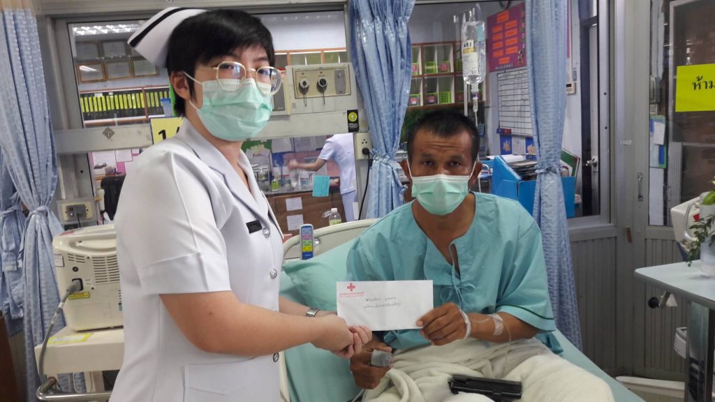วันที่ 3 ตุลาคม 2564 นางกรรณิกา กองฉลาด นายกเหล่ากาชาดจังหวัดชัยภูมิ มอบหมายให้ นางสมปรารถนา ชัยวิรัตนะ รองนายกเหล่ากาชาดจังหวัดชัยภูมิ นางณัฐกมล วัชกีกุล นางธนิดา สมัดไชย กรรมการเหล่ากาชาดจังหวัดชัยภูมิ เข้าเยี่ยมให้กำลัง ร.อ.พรศักดิ์ นาเทเวท ที่ รพ.ค่ายสุรนารี จังหวัดนครราชสีมา ซึ่งเป็นเจ้าหน้าที่ทหารที่ได้รับอุบัติเหตุถูกไฟฟ้าดูด ขณะปฏิบัติหน้าที่ในการช่วยเหลือประชาชนผู้ประสบภัยน้ำท่วม ในพื้นที่ อ.คอนสวรรค์ โดยได้มอบเงินเพื่อเป็นขวัญกำลังใจให้แก่เจ้าหน้าที่ดังกล่าวในการนี้ เหตุการณ์ดังกล่าวมีเจ้าหน้าที่ทหารได้รับบาดเจ็บรวม 3 นาย รักษาตัวที่รพ.ค่ายฯ 1 นาย สำหรับอีก 2 นาย ถูกส่งตัวเข้ารับการรักษาที่ รพ.พระมงกุฎเกล้า กรุงเทพฯ