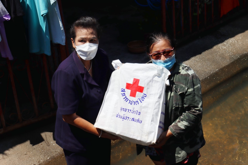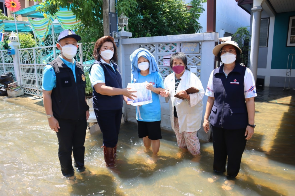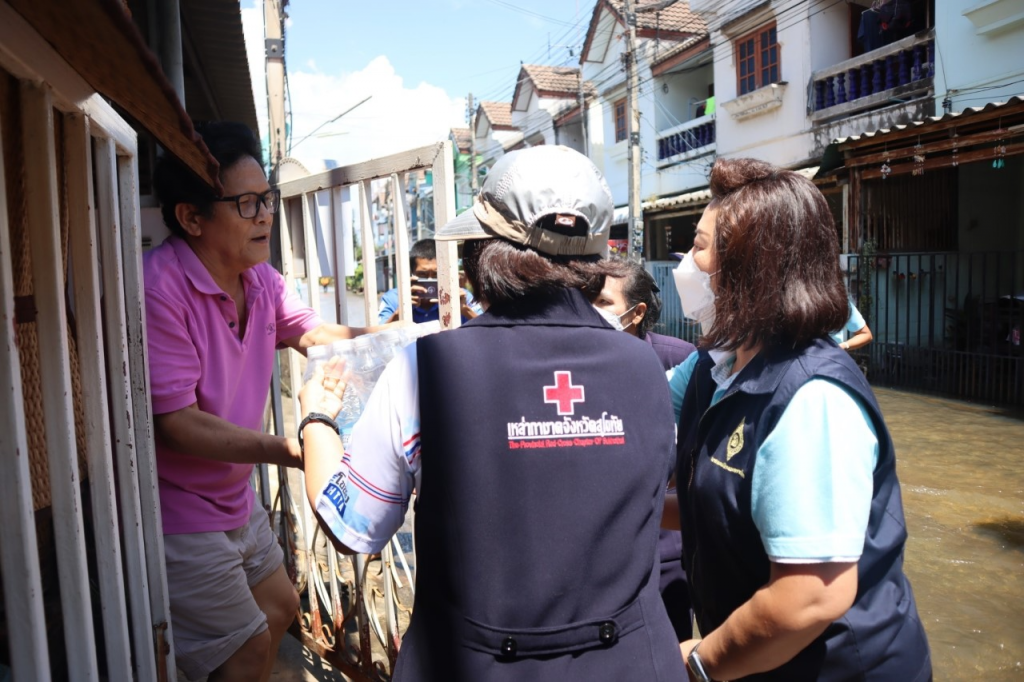 วันที่ 1 ตุลาคม 2564 นางกนกพร พรรณเทวี นายกเหล่ากาชาดจังหวัดสุโขทัย พร้อมด้วยนางสาวพัชรอร วงศ์กำแหง รองผู้ว่าราชการจังหวัดสุโขทัย/รองนายกเหล่ากาชาดจังหวัดสุโขทัย นายชยชัย แสงอินทร์ รองผู้ว่าราชการจังหวัดสุโขทัย กรรมการเหล่ากาชาดจังหวัดสุโขทัยและเจ้าหน้าที่เหล่ากาชาดจังหวัดสุโขทัย ร่วมกับมูลนิธิอาสาเพื่อนพึ่ง (ภาฯ) ยามยาก สภากาชาดไทย เจ้าหน้าที่ปกครองจังหวัดสุโขทัย ลงพื้นที่ช่วยเหลือประชาชนผู้ประสบอุทกภัยโดยได้นำอาหารปรุงสุก เครื่องอุปโภคบริโภค และน้ำดื่มมอบให้กับประชาชนที่ได้รับความเดือนร้อน ในพื้นที่หมูู่ที่ 12 ตำบลบ้านกล้วย อำเภอเมืองสุโขทัย จังหวัดสุโขทัย