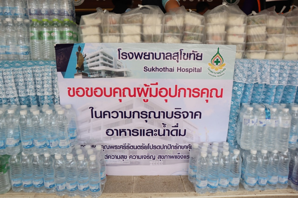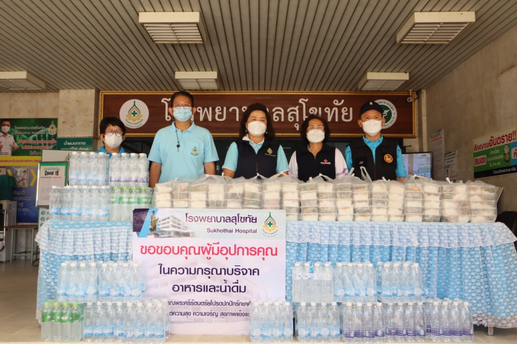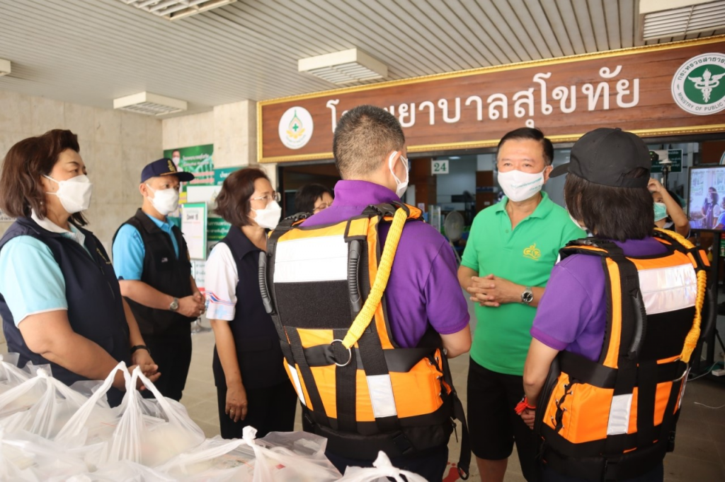 วันที่ 1 ตุลาคม 2564 นางกนกพร พรรณเทวี นายกเหล่ากาชาดจังหวัดสุโขทัย พร้อมด้วยรองผู้ว่าราชการจังหวัดสุโขทัย รองนายกเหล่ากาชาดจังหวัดสุโขทัย กรรมการเหล่ากาชาดจังหวัดสุโขทัยและเจ้าหน้าที่เหล่ากาชาดจังหวัดสุโขทัย ร่วมกับมูลนิธิอาสาเพื่อนพึ่ง (ภาฯ) ยามยากสภากาชาดไทย ลงพื้นที่เยี่ยมให้กำลังใจ บุคลากรทางการแพทย์ ที่ประสบปัญหาอุทกภัย โดยได้มอบอาหารปรุงสุก และน้ำดื่ม จำนวน 200 ชุด ณ โรงพยาบาลสุโขทัย อำเภอเมืองสุโขทัย จังหวัดสุโขทัย