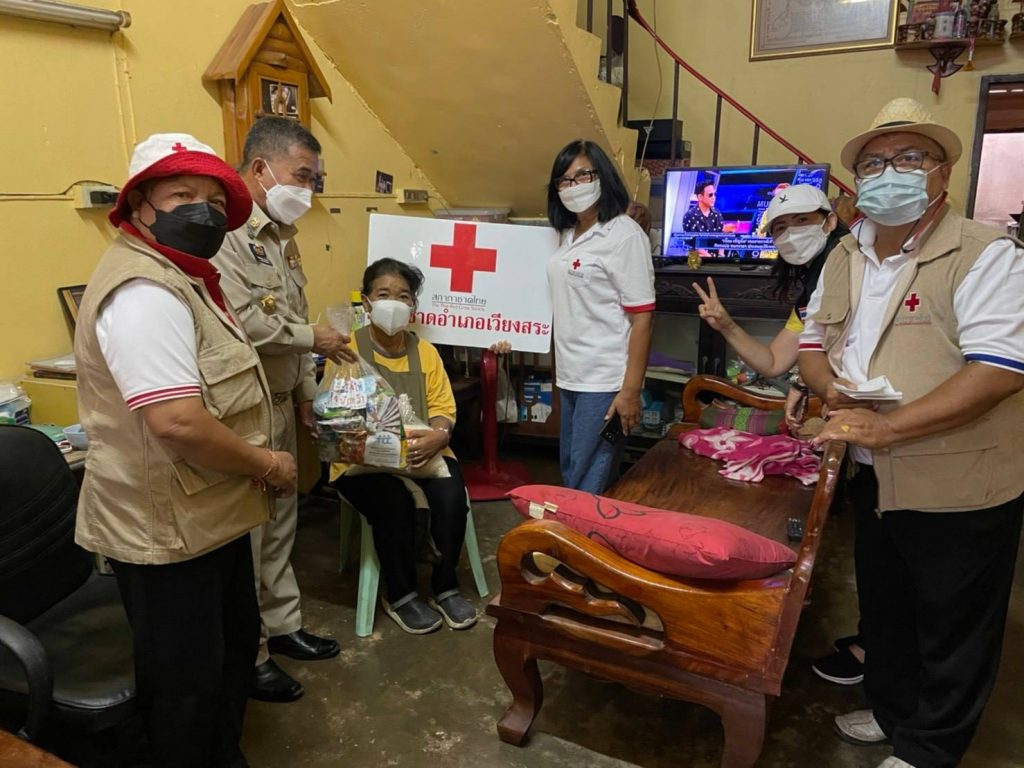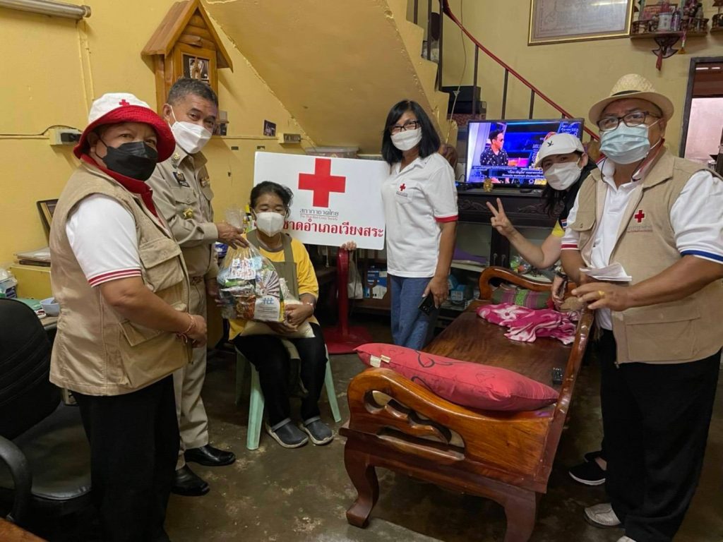 วันที่ 11 ตุลาคม 2564 นายสุพัชรพงศ์ วรประดิษฐ์นายอำเภอเวียงสระ นายกกิ่งกาชาดอำเภอเวียงสระพร้อมด้วยคณธกรรมการและสมาชิกกิ่งกาชาดอำเภอเวียงสระลงพื้นที่มอบสิ่งของตามโครงการ “เวียงสระ . . . ปันสุข”ให้แก่กลุ่มเปราะบาง ในพื้นที่ หมู่ที่ 2 หมู่ที่ 4 และหมู่ที่ 10 ตำบลบ้านส้อง อำเภอเวียงสระ จังหวัดสุราษฎร์ธานีจำนวน 20 ราย โดยได้มอบให้กับประชาชนกลุ่มเปราะบางและผู้ที่ได้รับผลกระทบจากโรคโควิด-19ประกอบด้วย ผู้สูงอายุ ผู้ป่วยติดเตียง และผู้พิการจำนวน 10 ราย เพื่อเป็นขวัญกำลังใจและบรรเทาทุกข์ในเบื้องต้น