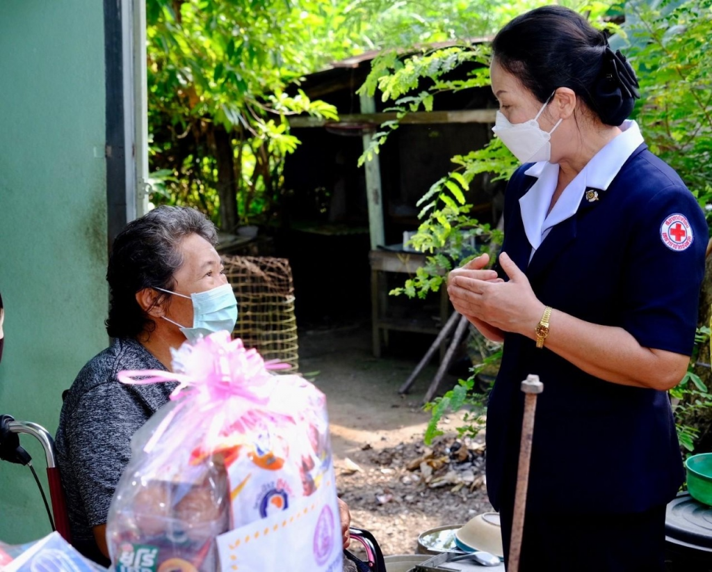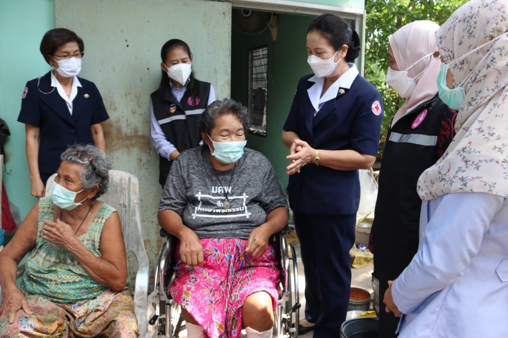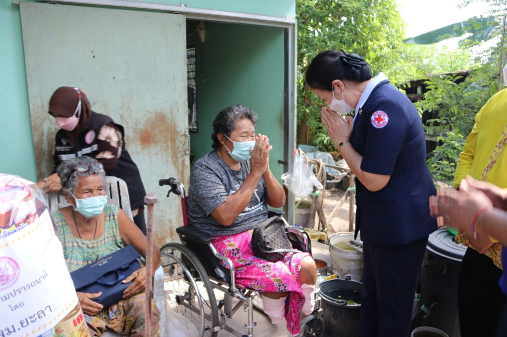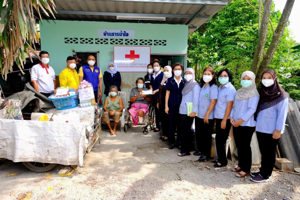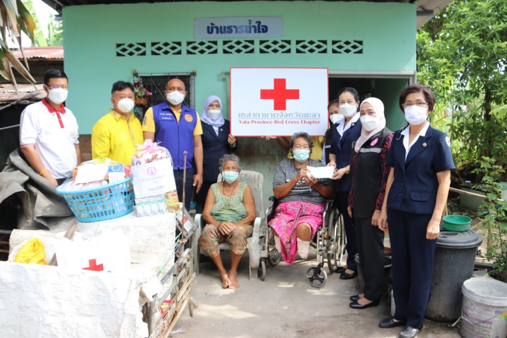 วันที่ 12 ตุลาคม 2564 ผศ.ดร.ทิพยวรรณ นิลทยา นายกเหล่ากาชาดจังหวัดยะลา พร้อมด้วยคณะกรรมการและสมาชิกเหล่ากาชาดจังหวัดยะลา ร่วมกับ นายธราวุธ ช่วยเกิด นายอำเภอเมืองยะลา สาธารณสุขจังหวัดยะลา พัฒนาสังคมและความมั่นคงของมนุษย์จังหวัดยะลา รพ.สต ต.สะเตงนอก ผู้นำท้องที่ ลงพื้นที่เยี่ยมให้กำลังใจ นางสาวเต็มดวง คงเจริญ อายุ 58 ปี อาศัยอยู่ หมู่ที่ 4 นัดโต๊ะโมง ตำบาลสะเตงนอก อำเภอเมืองยะลา จังหวัดยะลา เนื่องจากป่วยเป็นโรคเบาหวาน โรคความดันโลหิตสูง และโรคหัวใจ ต้องตัดขาทั้ง 2 ข้าง อาศัยอยู่กับมารดา อายุ 83 ปี มีอาการเริ่มจะหลงลืม สุขภาพไม่แข็งแรง เหล่ากาชาดจังหวัดยะลา มอบเงินสงเคราะห์ช่วยเหลือและมอบชุดธารน้ำใจสภากาชาดไทย จำนวน 1 ชุด ณ บ้านธารน้ำใจ หมู่ที่ 4 ตำบลสะเตงนอก อำเภอเมืองยะลา จังหวัดยะลา