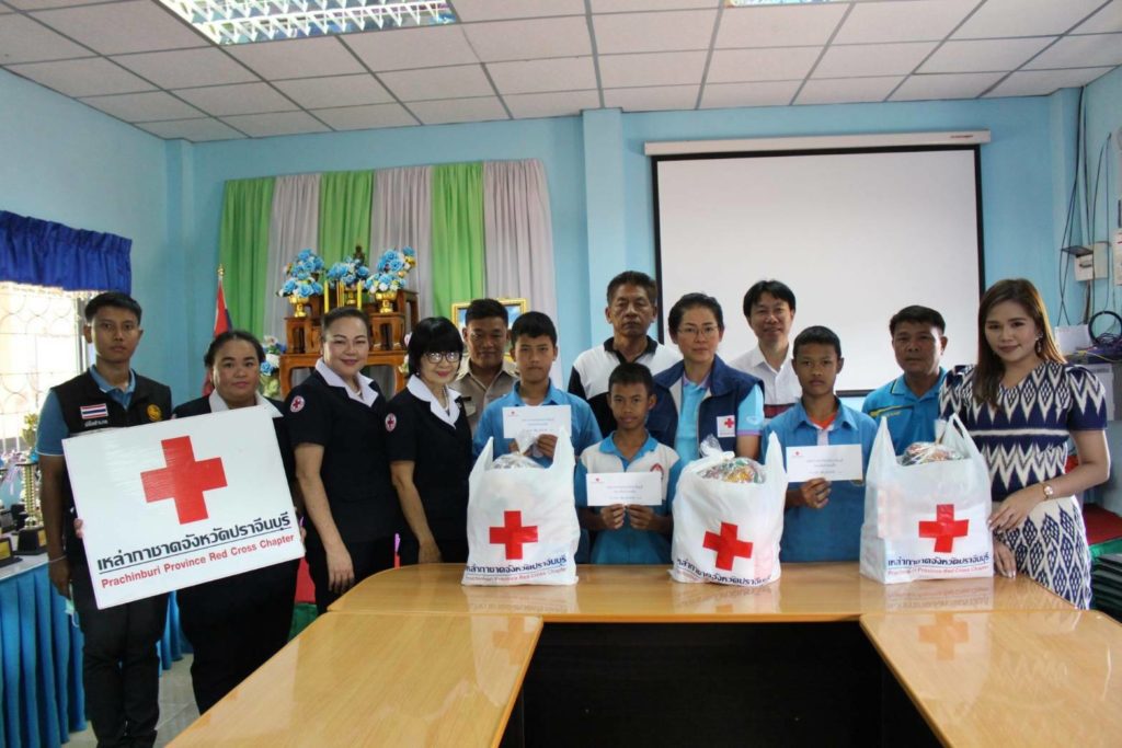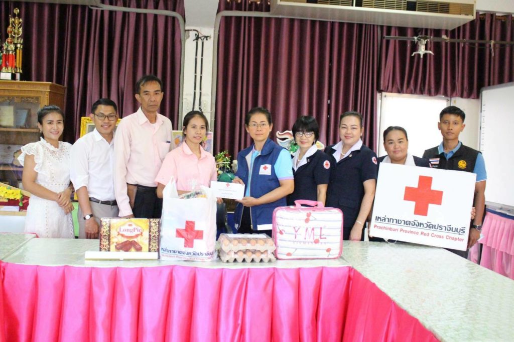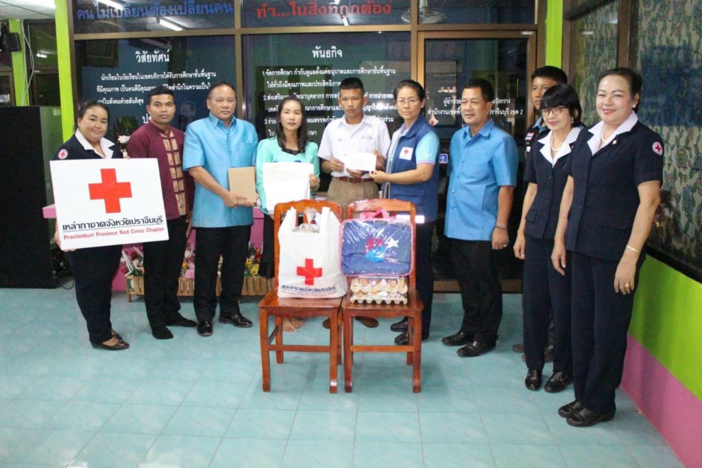 โดยเหล่ากาชาดจังหวัดปราจีนบุรี มอบเงินส่งเคราะห์ให้ 3,000 บาท และสิ่งของเครื่องใช้ที่จำเป็นให้รายละ 1 ชุด เพื่อเป็นการช่วยเหลือตามพันธกิจด้านการสังคมสงเคราะห์ต่อไป