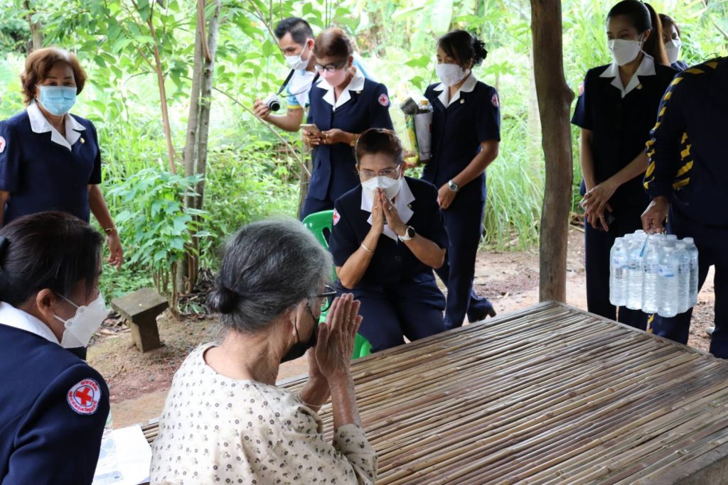 วันที่ 6 ตุลาคม 2564 นางศลิษา ภิรมย์รัตน์ นายกเหล่ากาชาดจังหวัดอุบลราชธานี พร้อมด้วยนางสาวภาวะดี มาลีวัตร ครองยุทธ นายกกิ่งกาชาดอำเภอศรีเมืองใหม่ รองนายกกิ่งกาชาดฯ เหรัญญิกกิ่งกาชาดฯ เลขานุการกิ่งกาชาดฯ อสม. และผู้ใหญ่บ้าน ลงพื้นที่ เยี่ยมผู้ยากไร้ยากจน ผู้ด้อยโอกาส ให้การสังคมสงเคราะห์ กรณี นางเทียม ทุมยา อายุ 71 ปี บ้านเลขที่ 67 หมู่ 2 ตำบลเเก้งกอก อำเภอศรีเมืองใหม่ จังหวัดอุบลราชธานี พร้อมมอบชุดบรรเทาทุกข์ จำนวน 1 ชุด เพื่อช่วยเหลือบรรเทาความเดือดร้อนและนำไปใช้ดำรงชีพ ต่อไป