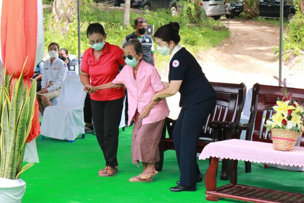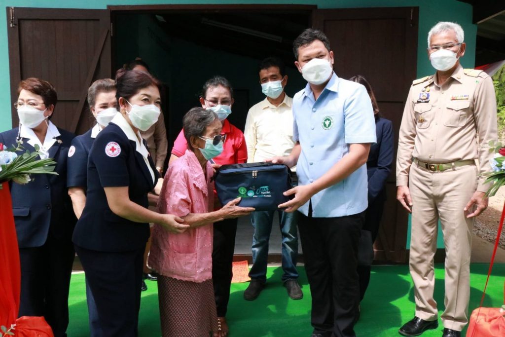 วันที่ 30 กันยายน 2564 นางอุรสา จินโต นายกเหล่ากาชาดจังหวัดสุราษฎร์ธานี พร้อมด้วยคณะกรรมการฯ ที่ปรึกษาเหล่ากาชาดจังหวัดสุราษฎร์ธานีและสมาชิกเหล่ากาชาดจังหวัดสุราษฎร์ธานีได้ลงพื้นที่อำเภอวิภาวดี จังหวัดสุราษฎร์ธานีเพื่อมอบบ้านที่ได้รับการซ่อมแซม ในโครงการ”บ้านซ่อมแซม จากใจเหล่ากาชาดสุราษฎร์ธานีประจำปีงบประมาณ พ.ศ. 2564″ ในราย นางตาบ แก้วศรีจันทร์บ้านเลขที่ 7 หมู่ที่ 1 ตำบลตะกุกเหนืออำเภอวิภาวดี จังหวัดสุราษฎร์ธานี ซึ่งบ้านหลังนี้ เหล่ากาชาดจังหวัดสุราษฎร์ธานีได้สนับสนุนงบประมาณ ในการซ่อมแซมบ้าน ให้นางตาบฯเป็นจำนวนเงิน ทั้งสิ้น 103,357 บาท โดยมี นายปัญญาภรณ์ วัฒนปราโมทย์ นายอำเภอวิภาวดีพร้อมด้วย นางสุนิสา รามแก้ว ประชาสัมพันธ์จังหวัดสุราษฎร์ธานีสาธารณสุขอำเภอ สัสดีอำเภอ พัฒนาการอำเภอ เกษตรอำเภอนายก อบต.ตะกุกเหนือ ปลัดอำเภอ กำนันตำบลตะกุกเหนือผู้ใหญ่บ้านหมู่ที่ 1 และ อสม. ให้การต้อนรับฯ