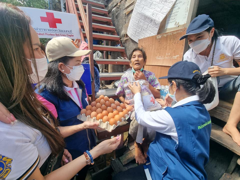 วันที่ 16 ตุลาคม 2564 แพทย์หญิงสุวรรณา ไชยชุมศักดิ์ นายกเหล่ากาชาดจังหวัดนนทบุรี นางพิกุล ผลบุญ ผู้ช่วยนายกเหล่ากาชาดฯ และกรรมการเหล่ากาชาดฯ พร้อมด้วย นายสมยศ วิชากร นายกกิ่งกาชาดอำเภอปากเกร็ด คุณอนัญญา กรีฑาพล นายกสโมสรไลออนส์ แจ้งวัฒนะ พระครูปลัดสมศักดิ์ มุนิวังโส เจ้าอาวาสวัดฉิมพลีฯ ปลัดอำเภอ เสมียนตราอำเภอ ปลัดอบต.เกาะเกร็ด กำนัน ผู้ใหญ่บ้าน และผู้แทนองค์กรปกครองส่วนท้องถิ่น ร่วมลงพื้นที่เยี่ยมและให้กำลังใจแก่ผู้ประสบอุทกภัยที่อาศัยอยู่บริเวณริมแม่น้ำเจ้าพระยาที่ได้รับผลกระทบจากน้ำท่วมขัง มอบสิ่งของเครื่องอุปโภคบริโภค น้ำดื่ม และไข่ไก่ เพื่อบรรเทาความเดือดร้อนในเบื้องต้นแก่ผู้ประสบอุทกภัย ณ บ้านเลขที่ 124/4 หมู่ 1 ตำบลเกาะเกร็ด อำเภอปากเกร็ด