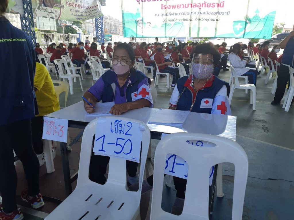 วันที่ 25 ตุลาคม 2564 นางปิติมา รักพานิชมณี นายกเหล่ากาชาดจังหวัดอุทัยธานี มอบหมายให้คณะกรรมการและสมาชิกเหล่ากาชาดจังหวัดอุทัยธานี ลงพื้นที่ช่วยปฏิบัติงาน ร่วมกับหน่วยงานในพื้นที่บริการฉีดวัคซีนให้แก่ประชาชน โดยมีอาสาสมัครด้านทั่วไปร่วมปฏิบัติงาน จำนวน 5 ราย ณ จุดบริการฉีดวัคซีนโควิด-19 จังหวัดอุทัยธานี
