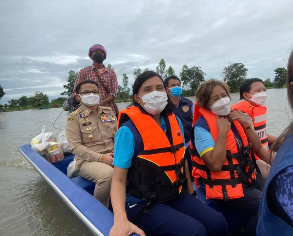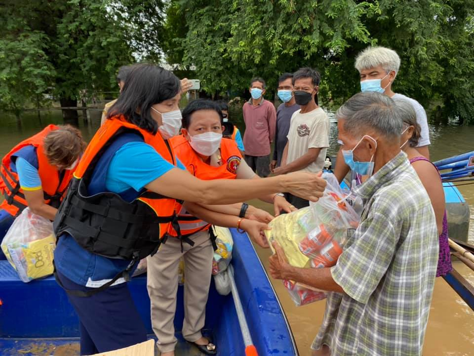 วันที่ 18 ตุลาคม 2564 นาวาเอกหญิงอินทิรา ตันเจริญ นายกเหล่ากาชาดจังหวัดชัยนาท พร้อมด้วยที่ปรึกษาเหล่ากาชาด นางสาวดรุณี มนัสวานิช พัฒนาสังคมและความมั่นคงของมนุษย์จังหวัดชัยนาท นายกิตวิชัย ไชยพรศิริ นายอำเภอหันคา และหน่วยงานที่เกี่ยวข้อง ลงพื้นที่บ้านตลุกรัง หมู่ที่ 10 ตำบลไพรนกยูง เพื่อเยี่ยมเยียนให้กำลังใจ พร้อมทั้งมอบถุงยังชีพ ผลิตภัณฑ์นมพร้อมดื่ม และเครื่องดื่มกาแฟสำเร็จรูป ให้กับผู้ประสบอุทกภัย จำนวน 52 ราย เพื่อบรรเทาความเดือดร้อนในเบื้องต้น หลังจากนั้น นายกเหล่ากาชาดจังหวัดชัยนาทและคณะ ได้ลงเรือเดินทางต่อไปยังพื้นที่ตำบลเด่นใหญ่ อำเภอหันคา เพื่อมอบถุงยังชีพ ผลิตภัณฑ์นมพร้อมดื่ม และเครื่องดื่มกาแฟสำเร็จรูป ให้กับผู้ประสบอุทกภัยที่บ้านเรือนถูกน้ำท่วมไม่สามารถเดินทางมารับมอบถุงยังชีพด้วยตนเองได้ จำนวน 10 ครัวเรือน พร้อมสอบถามและกล่าวให้กำลังใจกับผู้ประสบภัยดังกล่าวด้วย/เหล่ากาชาดจังหวัดชัยนาท