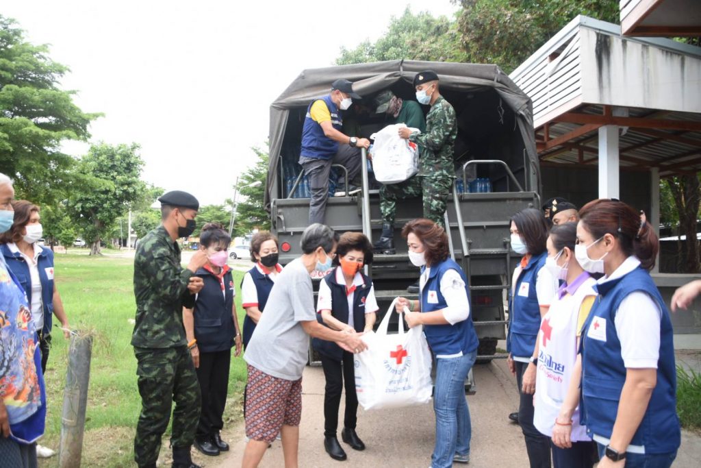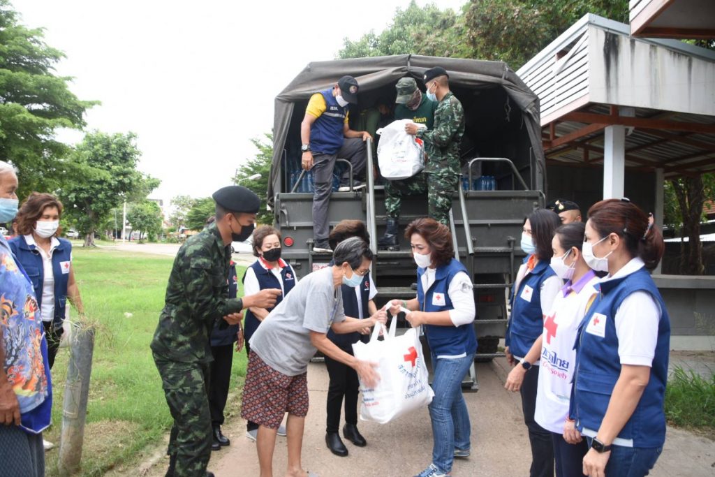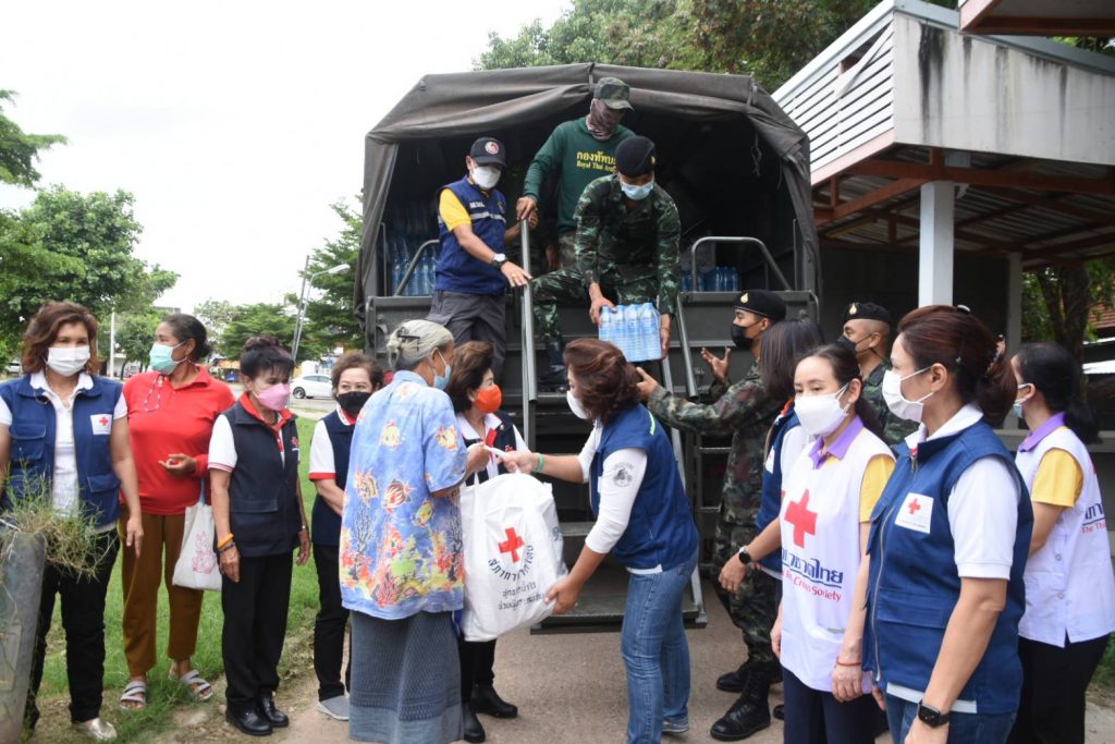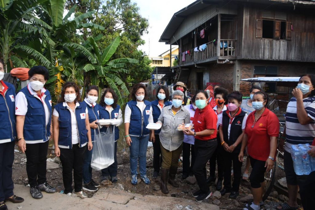 วันที่ 24 ตุลาคม 2564 นางณัฏฐินีภรณ์ จันทรโณทัย นายกเหล่ากาชาดจังหวัดนครราชสีมา คณะกรรมการ และสมาชิกเหล่ากาชาดจังหวัด จุดที่ 3 มอบถุงยังชีพ อาหารกล่อง ขนม และน้ำดื่ม จำนวน 29 ชุด ให้กับ ผู้ประสบอุทกภัย ที่ชุมชนบ้านชุมชนเกษตรสามัคคี 2 เพื่อเป็นขวัญกำลังใจ และบรรเทาความเดือดร้อน ห้วงที่เกิดอุทกภัยในพื้นที่จังหวัดนครราชสีมา ณ วัดสุสาน ต.ในเมือง อ.เมืองนครราชสีมา