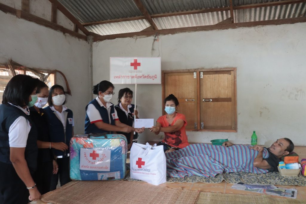 วันที่ 26 ตุลาคม 2564 นางกรรณิกา กองฉลาด นายกเหล่ากาชาดจังหวัดชัยภูมิ พร้อมด้วยนางสมปรารถนา ชัยวิรัตนะ รองนายกเหล่ากาชาดจังหวัดชัยภูมิ ที่ปรึกษา และคณะกรรมการเหล่ากาชาดจังหวัดชัยภูมิ ร่วมกับนายอำเภอหนองบัวระเหว เยี่ยมให้กำลังใจพร้อมมอบเงินและสิ่งของให้แก่ นายทองใบ อินอ่อน ผู้ป่วยติดเตียง อาศัยอยู่บ้านหัวหนอง หมู่ที่4 ตำบลหนองบัวระเหว อำเภอหนองบัวระเหว จังหวัดชัยภูมิ