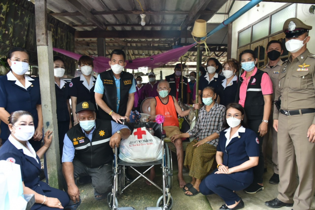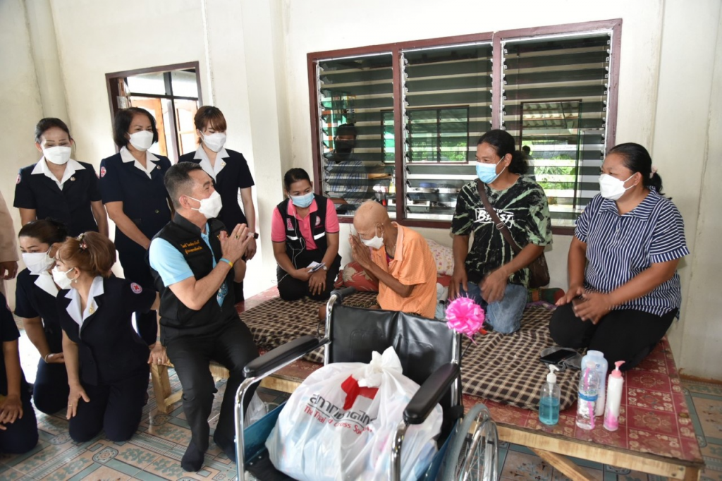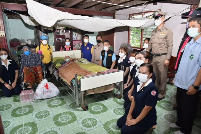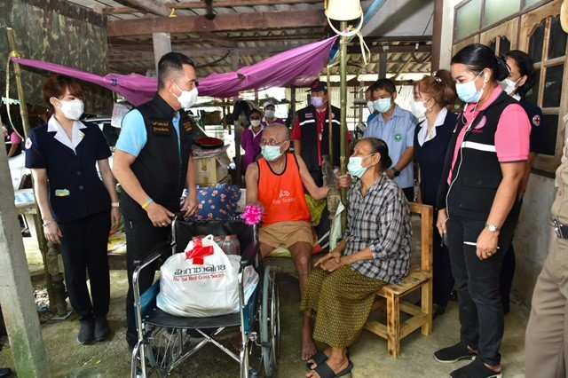 วันที่ 8 ตุลาคม 2564 นายไมตรี ไตรติลานันท์ ผู้ว่าราชการจังหวัดฉะเชิงเทรา พร้อมด้วยนางจันทรรัตน์ ไตรติลานันท์ นายกเหล่ากาชาดจังหวัดฉะเชิงเทรา คณะกรรมการสมาชิกเหล่ากาชาดจังหวัดฉะเชิงเทรา สำนักงานพัฒนาสังคมและความมั่นคงของมนุษย์จังหวัดฉะเชิงเทรา นายอำเภอบางน้ำเปรี้ยว ปลัดอำเภอ เจ้าหน้าที่ท้องถิ่น ลงพื้นที่เยี่ยมให้กำลังใจผู้สูงอายุ ผู้พิการ ผู้ยากไร้ และผู้ประสบภัยต่างๆ ในพื้นที่อำเภอบางน้ำเปรี้ยว จำนวน 5 ครอบครัว พร้อมนำถุงยังชีพ น้ำดื่ม จำนวน 5 แพ็ค เพื่อช่วยเหลือบรรเทาทุกข์และเยี่ยมให้กำลังใจครอบครัวผู้ป่วย ผู้สูงอายุในพื้นที่ ตำบลบึงน้ำรักษ์ อำเภอบางน้ำเปรี้ยว จังหวัดฉะเชิงเทรา