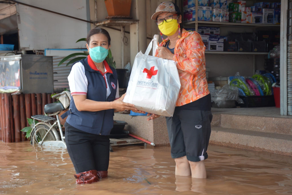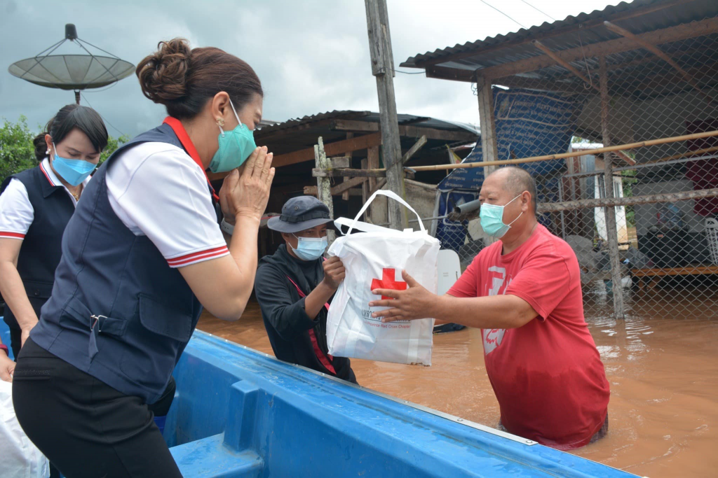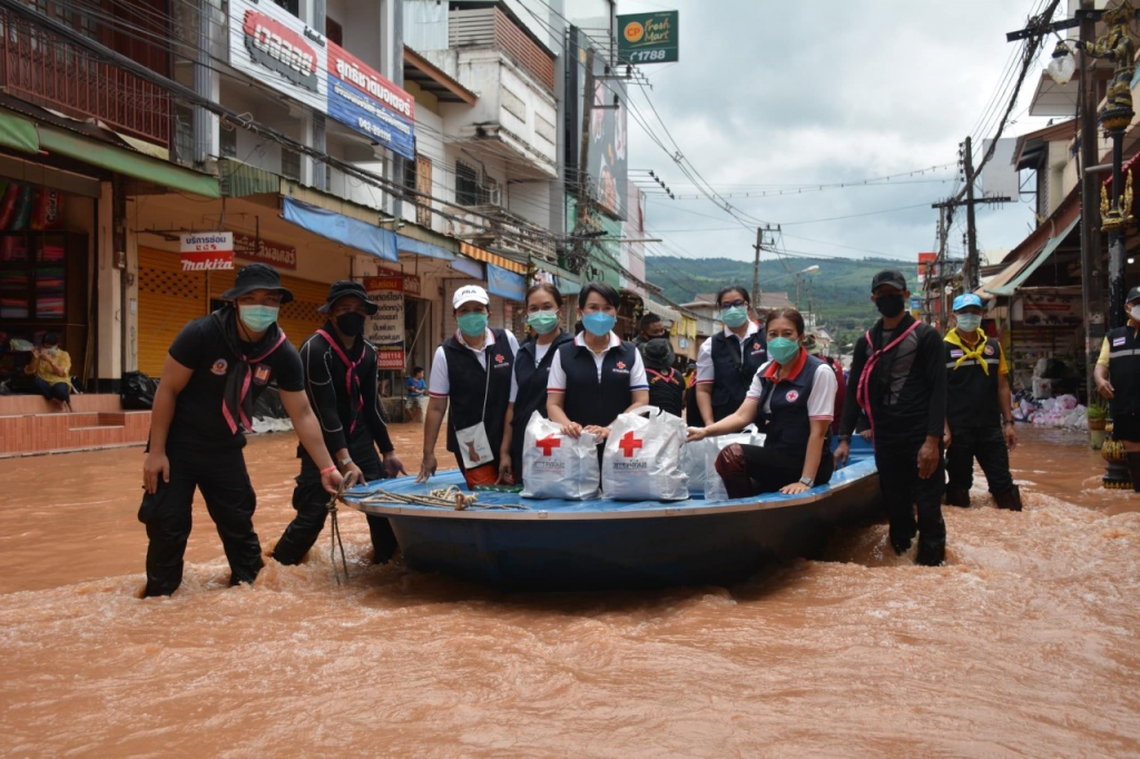 วันที่ 27 กันยายน 2564 นายชัยธวัช เนียมศิริ ผู้ว่าราชการจังหวัดเลย พร้อมด้วยนางนงค์นิตย์ เนียมศิริ นายกเหล่ากาชาดจังหวัดเลย , นายศิริวัฒน์ พินิจพานิชย์ ปลัดจังหวัดเลย / เลขานุการเหล่ากาชาดจังหวัดเลย , กรรมการเหล่ากาชาดจังหวัดเลย , หัวหน้าสำนักงานป้องกันและบรรเทาสาธารณภัยจังหวัดเลย นายนที พรมภักดี นายอำเภอด่านซ้าย , ปภ จังหวัดเลย สาขาด่านซ้าย , กองร้อย อส.จ.เลย ที่ 2 ปลัดอำเภอ จนท.ตำรวจ ตชด.247 จนท.มทบ.28 จนท.ทหาร ร. 8 พัน 1 , ทหารพราน ที่ 2101 กอ.รมน.จ.เลย , จนท.โครงการอ่างเก็บน้ำห้วยศอกกรมชลประทาน , อปท. , สาธารณสุขอำเภอ , สมาชิก อส. , กำนัน ผู้ใหญ่บ้านฯลฯ และประชาชนจิตอาสา ลงพื้นที่ตรวจเยี่ยมให้ความช่วยเหลือผู้ประสบอุทกภัย จากสถานการณ์ฝนตกหนัก น้ำป่าไหลหลาก แม่น้ำหมันเกิดเอ่อล้นท่วมที่ลุ่มต่ำ ซึ่งไหลผ่านพื้นที่เศรษฐกิจในเขตตัวเมืองอำเภอด่านซ้าย เป็นเหตุให้ร้านค้า และบ้านเรือนประชาชนได้รับความเสียหาย ในการนี้ เหล่ากาชาดจังหวัดเลย มอบถุงเครื่องอุปโภคบริโภค จำนวน 139 ชุด เพื่อเป็นการช่วยเหลือเบื้องต้น ให้กับประชาชนผู้ได้รับผลกระทบจากอุทกภัยดังกล่าว