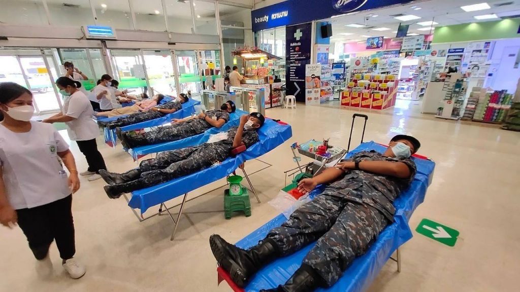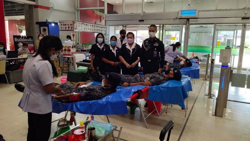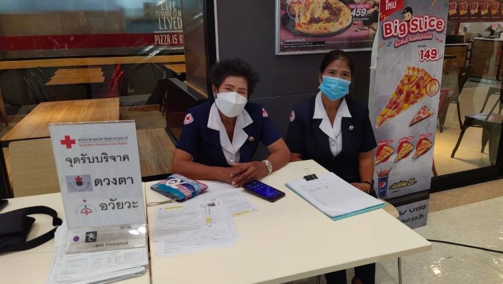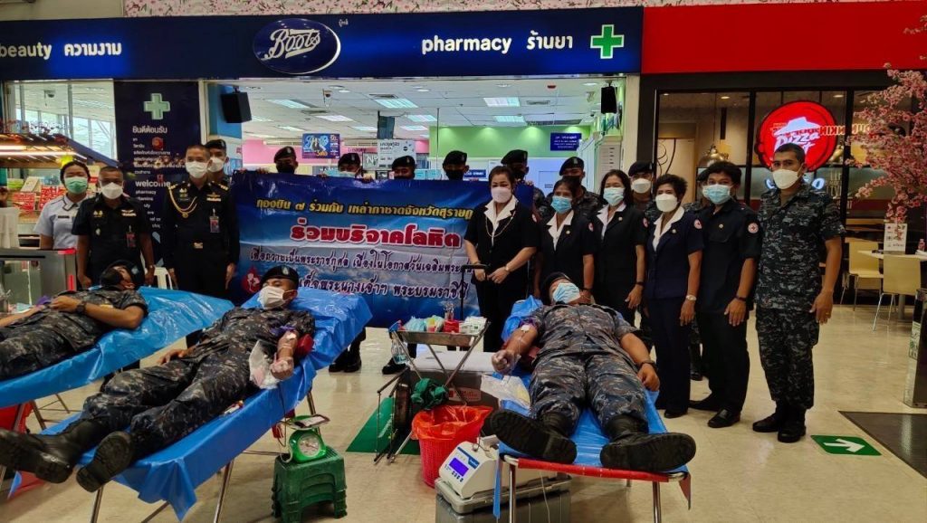 วันที่ 15 ตุลาคม 2564 นางอุรสา จินโต นายกเหล่ากาชาดจังหวัดสุราษฎร์ธานี มอบหมายให้ที่ปรึกษา/กรรมการ/สมาชิกเหล่ากาชาดจังหวัดสุราษฎร์ธานีและ ธนาคารเลือด โรงพยาบาลสุราษฎร์ธานีหอการค้าจังหวัดสุราษฎร์ธานี และ YEC สุราษฎร์ธานีร่วมกับ กองบิน 7 สุราษฎร์ธานีและ เทสโก้ โลตัส สุราษฎร์ธานีจัดกิจกรรมรับบริจาคโลหิต ดวงตา และอวัยวะเพื่อถวายเป็นพระราชกุศลแด่พระบาทสมเด็จพระบรมชนกาธิเบศรมหาภูมิพลอดุลยเดชมหาราช บรมนาถบพิตรเนื่องในโอกาสวันคล้ายวันสวรรคต 13 ตุลาคม 2564และเพื่อเป็นการจัดหาโลหิตสำหรับใช้ในการรักษาผู้ป่วยของโรงพยาบาลในจังหวัดสุราษฎร์ธานี ทั้ง 19 อำเภอ โดยมี นาวาอากาศโท จักริน ภูวเดชาพงศ์ เสนาธิการกองบิน 7พร้อมด้วย กำลังพลจากกองบิน 7 สุราษฎร์ธานีผู้บริหาร พนักงานและประชาชนทั่วไป ร่วมกิจกรรม ณ บริเวณพื้นที่ให้บริการลูกค้า เทสโก้ โลตัส สุราษฎร์ธานีอำเภอเมือง จังหวัดสุราษฎร์ธานี มีผู้มาลงทะเบียนบริจาคโลหิต จำนวน 72 รายได้รับโลหิต จำนวน 63 ยูนิต (คิดเป็น 22,050 ซีซี)ไม่ผ่านการคัดกรอง จำนวน 9 รายมีผู้แสดงความจำนงบริจาคดวงตา จำนวน 1 ราย และมีผู้แสดงความจำนงบริจาคอวัยวะ จำนวน 1 ราย