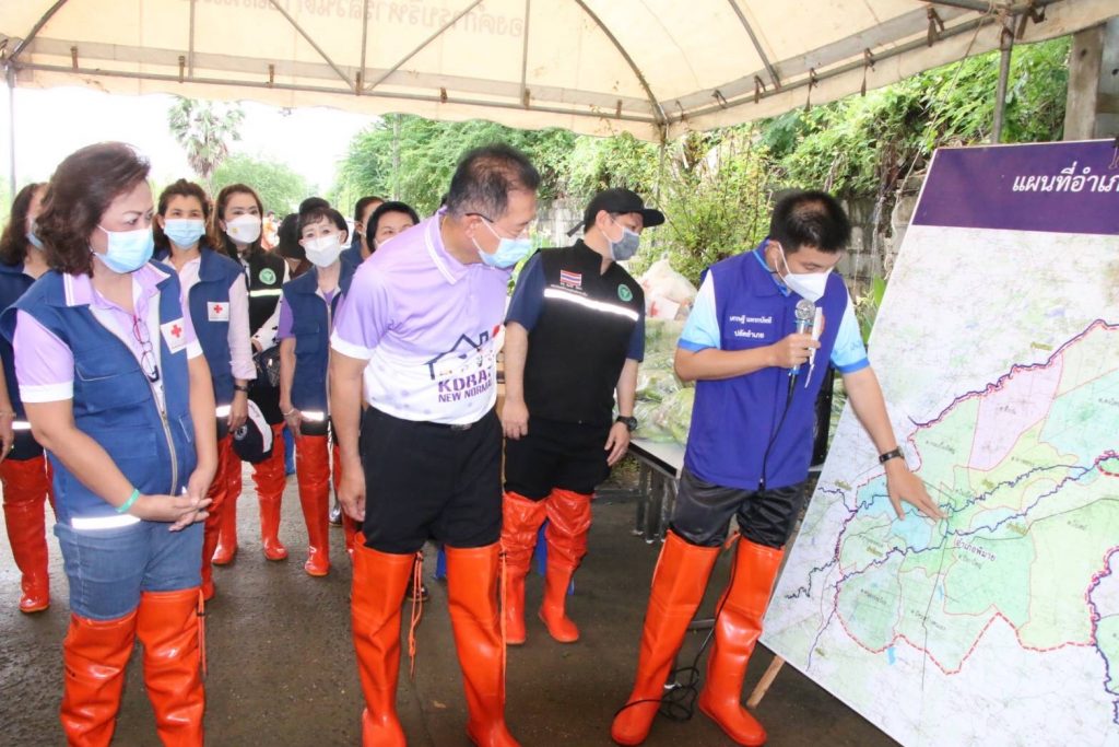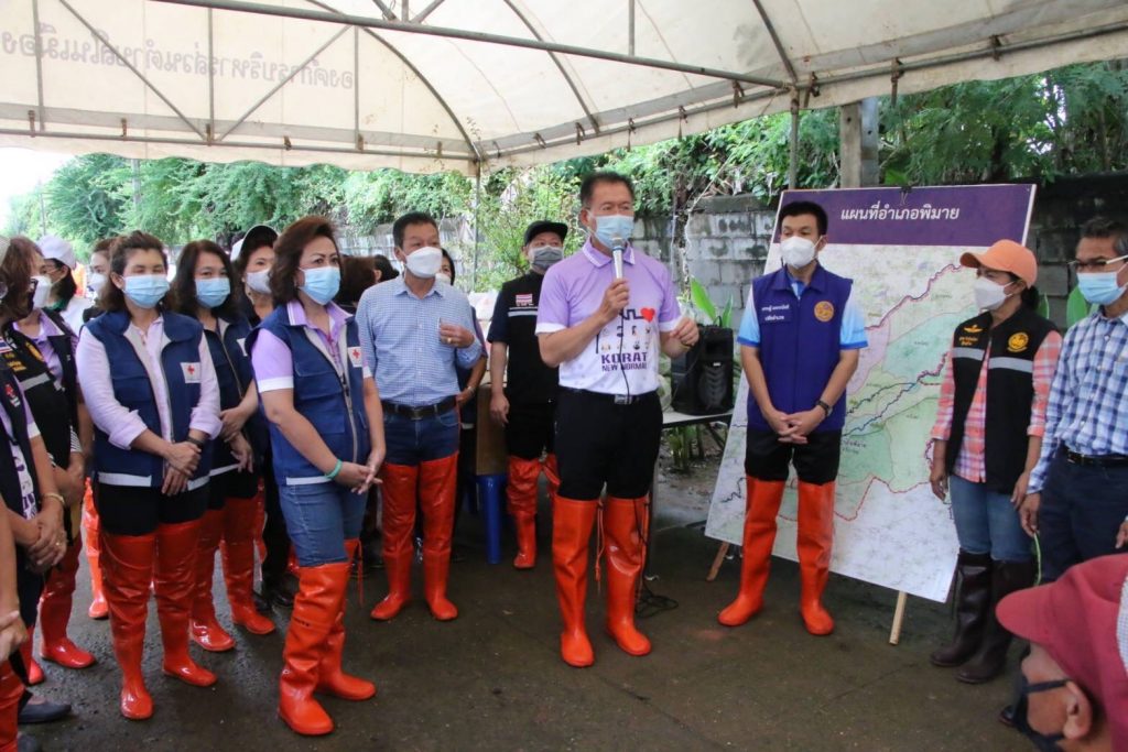 วันที่ 16 ตุลาคม 2564 นายวิเชียร จันทรโณทัย ผู้ว่าราชการจังหวัดนครราชสีมา พร้อมด้วยนางณัฏฐินีภรณ์ จันทรโณทัย นายกเหล่ากาชาดจังหวัดนครราชสีมา คณะกรรมการและสมาชิกเหล่ากาชาดจังหวัด ลงพื้นที่ตรวจเยี่ยมและแก้ไขปัญหาน้ำท่วมและระบายน้ำช้าให้กับประชาชนที่ได้รับผลกระทบจากภาวะน้ำท่วม ในพื้นที่อำเภอพิมาย จำนวน 40 ครัวเรือน ณ บ้านวังกุ่ม ม.14 ต.ในเมือง อ.พิมาย จ.นครราชสีมา