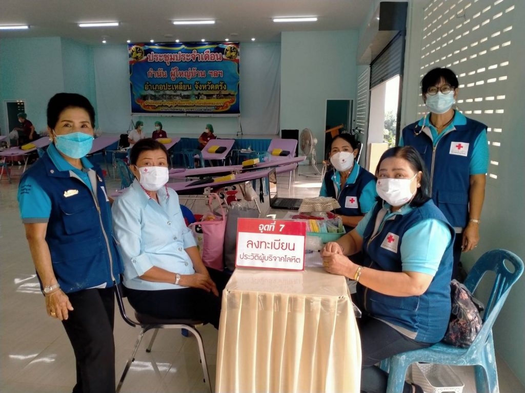 วันที่ 8 ตุลาคม 2564 นางละมัย เจริญโสภา นายกเหล่ากาชาดจังหวัดตรัง มอบหมายคณะกรรมการเหล่ากาชาด สมาชิก เจ้าหน้าที่ และจิตอาสาสภากาชาดไทย ร่วมกับธนาคารเลือดโรงพยาบาลตรัง ออกหน่วยรับบริจาคโลหิต ดวงตา และอวัยวะ ณ ศาลาประชาคม อำเภอปะเหลียน จังหวัดตรัง โดยนายเอกชัย สุนทร นายอำเภอปะเหลียน นำบุคคลากรร่วมบริจาคโลหิตด้วยสำหรับวันนี้ มีผู้บริจาคทั้งหมด 49 ราย ได้โลหิต 38 ยูนิต คิดเป็นปริมาณ 15,200 ซีซี. มีผู้แสดงความจำนงบริจาคดวงตา จำนวน 13 ราย และผู้แสดงความจำนงบริจาคอวัยวะ 14 ราย ผู้รับเข็มที่ระลึกบริจาคโลหิต 7 ครั้ง 4 รายและ24 ครั้ง 1 ราย พร้อมมอบหน้ากากอนามัยกับสายคล้องคอ 40 ชิ้น