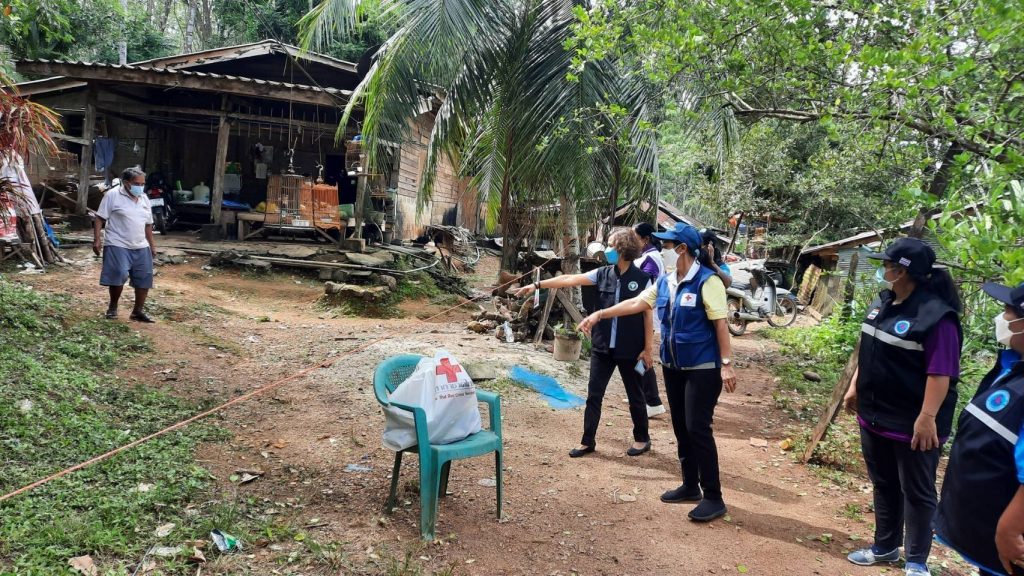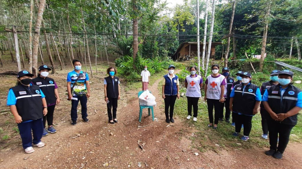 วันที่ 11 ตุลาคม 2564 นางละมัย เจริญโสภา นายกเหล่ากาชาดจังหวัดตรัง มอบหมายให้นางมินตรา อรทัย กรรมการเหล่ากาชาด ผู้นำท้องถิ่น อสม.และจิตอาสาสภากาชาดไทย ลงพื้นที่เยี่ยมผู้กักตัวในสถานการณ์แพร่ระบาดของโรคติดเชื้อไวรัสโคโรน่า พร้อมมอบชุดธารน้ำใจสภากาชาดไทยในเขตพื้นที่อำเภอห้วยยอด จังหวัดตรัง