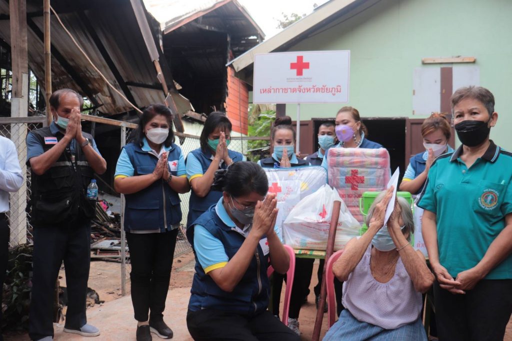 วันที่ 19 ตุลาคม 2546 นางกรรณิกา กองฉลาด นายกเหล่ากาชาดจังหวัดชัยภูมิ พร้อมด้วยรองนายกเหล่ากาชาดจังหวัดชัยภูมิ ที่ปรึกษาฯ ร่วมกับอำเภอเมืองชัยภูมิ เยี่ยมให้กำลังใจ ครอบครัวผู้ประสบเหตุเพลิงไหม้ รายนางแอนนา แรมเซย์ อยู่บ้านเลขที่ 29 หมู่ที่ 15 ตำบลนาฝาย อำเภอเมืองชัยภูมิ ได้รับความเสียหายทั้งหลัง โดยมอบเงินช่วยเหลือ จำนวน 10,000 บาท ทั้งนี้ เงินช่วยเหลือจำนวนดังกล่าวได้รับการสนับสนุนจาก คุณแม่ชุติมา ตั้งรัตคณะ