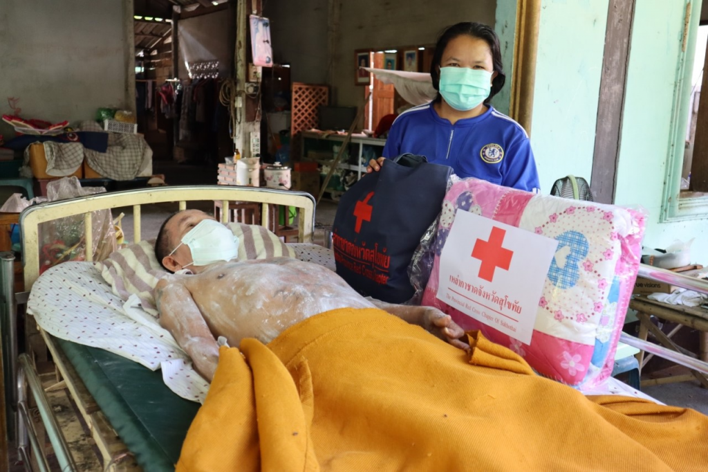 วันที่ 26 ตุลาคม 2564 นางกนกพร พรรณเทวี นายกเหล่ากาชาดจังหวัดสุโขทัย พร้อมด้วยสาธารณสุขอำเภอเมืองสุโขทัย เจ้าหน้าที่สาธารณสุข และหน่วยงานที่เกี่ยวข้อง ลงพื้นที่ให้บริการฉีควัคซีนโควิค 19 แก่กลุ่มเปราะบาง ผู้ป่วยติดเตียง จำนวน 3 รายและเยี่ยมให้กำลังใจ โดยมอบเครื่องอุปโภคบริโภค ผ้าห่ม ช่วยเหลือในเบื้องต้น ณ ตำบลเมืองเก่า อำเภอเมืองสุโขทัย จังหวัดสุโขทัย