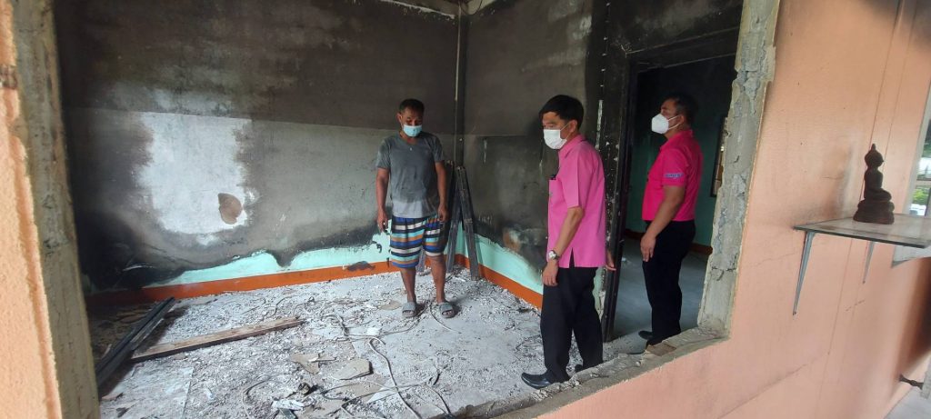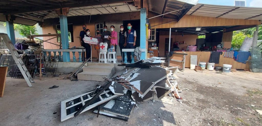 วันที่ 5 พฤศจิกายน 2564 คณะกรรมการและสมาชิกกิ่งกาชาดอำเภอสัตหีบ ลงพื้นที่ช่วยเหลือราษฎรผู้ประสบเหตุไฟไหม้ที่พักอาศัย ราย นายอุทัย นวลมณี ในเขตพื้นที่ หมู่ 6 ตำบลสัตหีบ อำเภอสัตหีบ จังหวัดชลบุรี พร้อมทั้งมอบถุงยังชีพ