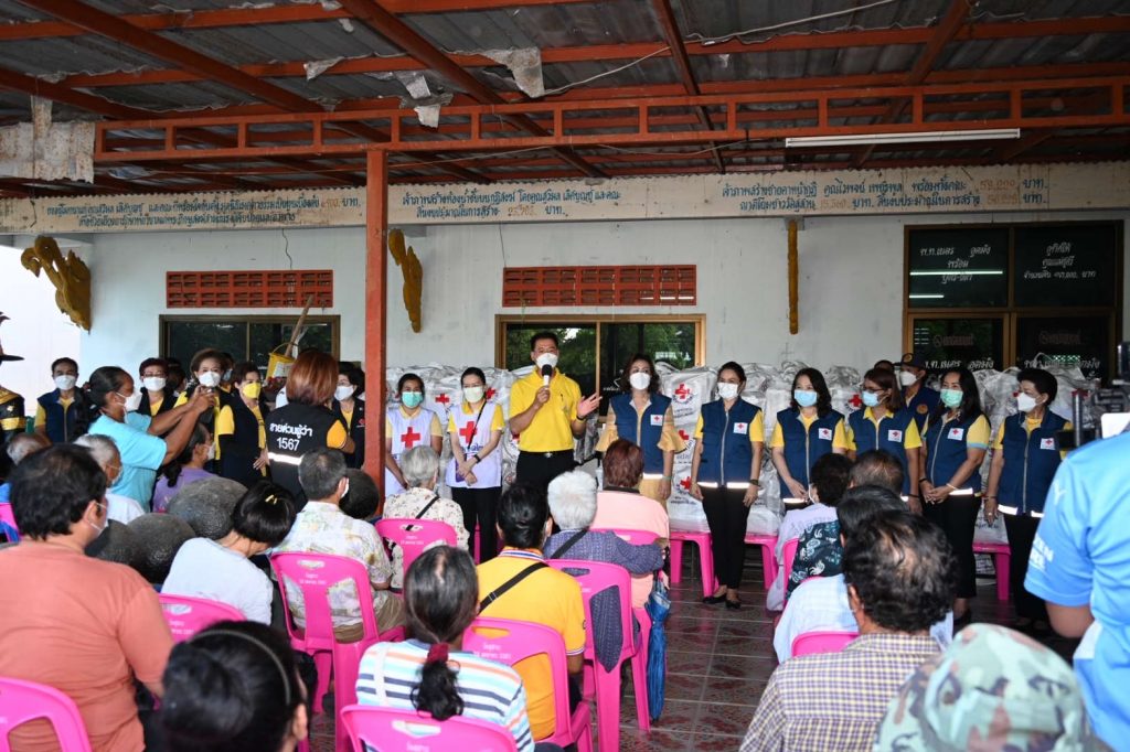 วันที่ 1 พฤศจิกายน 2564 นายวิเชียร จันทรโณทัย ผู้ว่าราชการจังหวัดนครราชสีมา พร้อมด้วย นางณัฏฐินีภรณ์ จันทรโณทัย นายกเหล่ากาชาดจังหวัดนครราชสีมา คณะกรรมการ และสมาชิกเหล่ากาชาดจังหวัด จุดที่ 2 มอบถุงยังชีพให้กับผู้ประสบอุทกภัย ณ ชุมชนเกษตรสามัคคี 1, 2 และชุมชนประปาพัฒนา จำนวน 410 ถุง เพื่อเป็นขวัญกำลังใจ บรรเทาความเดือดร้อน ในช่วงที่เกิดอุทกภัยในพื้นที่จังหวัดนครราชสีมา ณ วัดสุสาน ต.ในเมือง อ.เมืองนครราชสีมา จ.นครราชสีมา