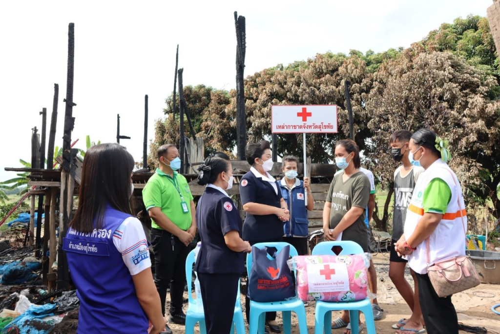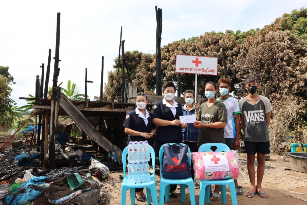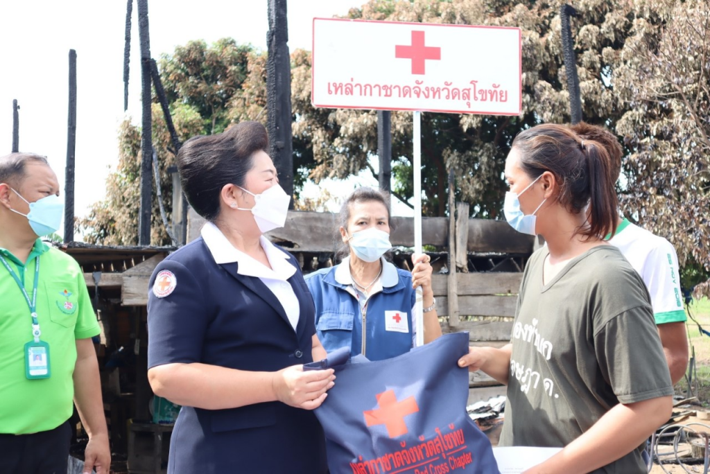 วันที่ 4 พฤศจิกายน 2564 นางกนกพร พรรณเทวี นายกเหล่ากาชาดจังหวัดสุโขทัย พร้อมด้วยนางสุวภี อุไรวรณ์ รองนายกเหล่ากาชาดจังหวัดสุโขทัย ปลัดอำเภอเมืองสุโขทัย ผู้นำท้องที่ ผู้นำท้องถิ่น กรรมการเหล่ากาชาดจังหวัดสุโขทัย เจ้าหน้าที่สาธารณสุขอำเภอเมืองสุโขทัยและเจ้าหน้าที่เหล่ากาชาดจังหวัดสุโขทัย ลงพื้นที่เยี่ยมบรรเทาทุกข์ผู้ประสบอัคคีภัย เสียหายทั้งหลัง จำนวน 1 หลัง โดยเหล่ากาชาดจังหวัดสุโขทัย ได้มอบเงินช่วยเหลือ 10,000 บาทพร้อมถุุงธารน้ำใจ ผ้าห่ม และน้ำดื่ม ให้แก่ นายสมภพ มะลิดวง หมู่ที่่ 2 ตำบลปากพระ อำเภอเมืองสุโขทัย จังหวัดสุโขทัย