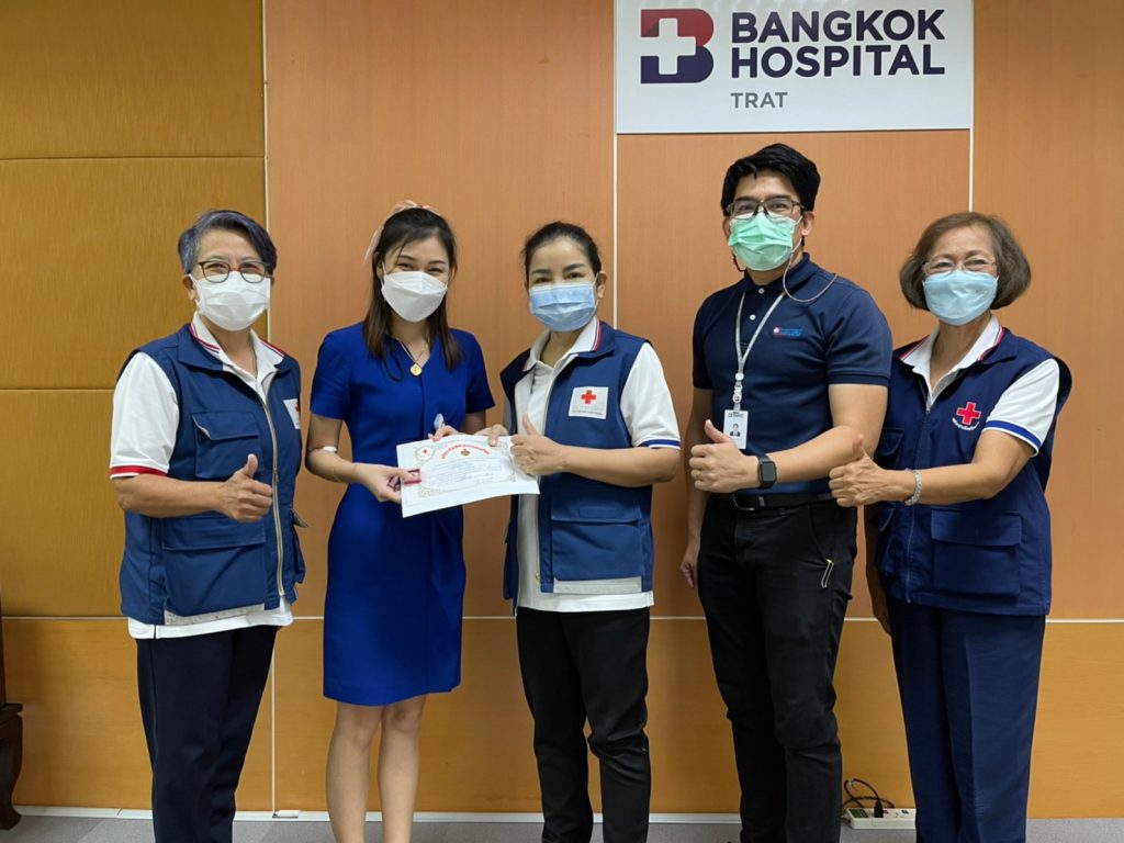 วันที่ 9 พฤศจิกายน 2564 นางชุลีพร เตรัตน์ นายกเหล่ากาชาดจังหวัดตราด พร้อมด้วยคณะกรรมการและสมาชิกเหล่ากาชาดจังหวัดตราด ร่วมปฏิบัติงานและเยี่ยมให้กำลังใจผู้ร่วมกิจกรรมบริจาคโลหิต ตามโครงการ “รับบริจาคโลหิตของเหล่ากาชาดจังหวัดตราด ประจำปี 2564” ซึ่งโรงพยาบาลกรุงเทพตราด ร่วมกับสำนักงานเหล่ากาชาดจังหวัดตราด และโรงพยาบาลตราด ร่วมกันจัดหน่วยออกรับบริจาคโลหิตในครั้งนี้ นายแพทย์จักรกฤษณ์ สุรการ ผู้อำนวยการโรงพยาบาลกรุงเทพตราด พร้อมด้วยพนักงาน ประชาชน ตลอดจนเจ้าหน้าที่จากสมาคมตัวแทนประกันภัยและที่ปรึกษาทางการเงินจังหวัดตราด เข้าร่วมกิจกรรมบริจาคโลหิตตามโครงการนี้ ที่ห้องประชุมชั้น 2 โรงพยาบาลกรุงเทพตราด มีผู้แสดงความจำนงบริจาคโลหิตจำนวน 79 ราย ผ่านการคัดกรอง จำนวน 67 ราย ได้โลหิต จำนวน 30,150 ซีซี