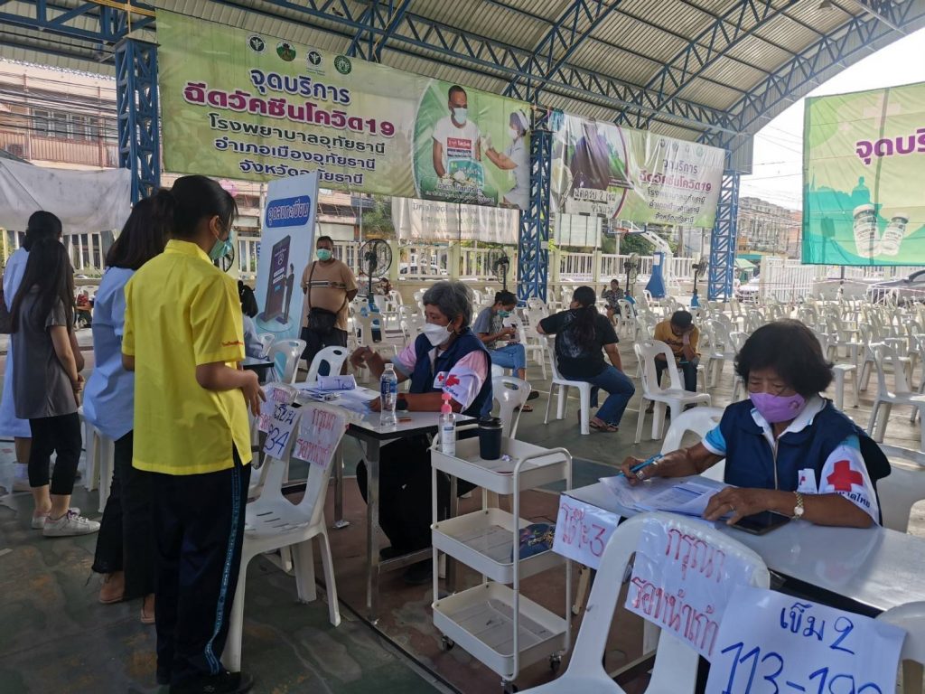 วันที่ 11 พฤศจิกายน 2564 นางปิติมา รักพานิชมณี นายกเหล่ากาชาดจังหวัดอุทัยธานี มอบหมายให้คณะกรรมการและสมาชิกเหล่ากาชาดจังหวัดอุทัยธานี ลงพื้นที่ช่วยปฏิบัติงาน ร่วมกับหน่วยงานในพื้นที่บริการฉีดวัคซีนให้แก่ประชาชนทั่วไป โดยฉีดวัคซีน เข็ม 2 (แอสตร้าเซเนก้า) จำนวน 81 ราย ฉีดวัคซีน เด็กนักเรียน(ไฟเซอร์) จำนวน 112 ราย โดยมีอาสาสมัครด้านทั่วไปร่วมปฏิบัติงาน จำนวน 2 ราย ณ จุดบริการฉีดวัคซีนโควิด-19 จังหวัดอุทัยธานี