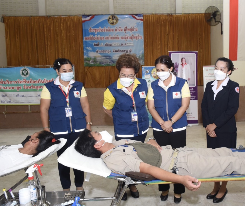 วันที่ 15 พฤศจิกายน 2564 นายสยาม ศิริมงคล นายกเหล่ากาชาด/ผู้ว่าราชการจังหวัดอุดรธานี มอบหมายให้นางจริญญา กังน้อย รองนายกเหล่ากาชาดจังหวัดอุดรธานี พร้อมด้วยคณะกรรมการและเจ้าหน้าที่เหล่ากาชาดจังหวัดอุดรธานี ออกหน่วยรับบริจาคโลหิตเคลื่อนที่ ร่วมกับโรงพยาบาลจังหวัดอุดรธานี ในการนี้ นายทวี ชิณรงค์ นายอำเภอนายูง นางพริ้มเพรา ชิณรงค์ ภริยานายอำเภอนายูง ให้การต้อนรับและเข้าร่วมกิจกรรม พร้อมด้วยข้าราชการ เจ้าหน้าที่ ลูกจ้าง ผู้นำชุมชน องค์กรปกครองส่วนท้องถิ่น สาธารณสุขอำเภอ พระภิกษุสงฆ์ และประชาชนทั่วไป เข้าร่วมกิจกรรมการบริจาคโลหิต ซึ่งมีผู้แสดงความจำนงบริจาคดวงตา 16 ราย อวัยวะ 16 ราย และบริจาคโลหิต 134 ราย ผ่านการคัดกรอง 107 ราย รวมปริมาณโลหิต 42,800 ซีซี. ณ ที่ว่าการอำเภอนายูงอำเภอนายูง จังหวัดอุดรธานี