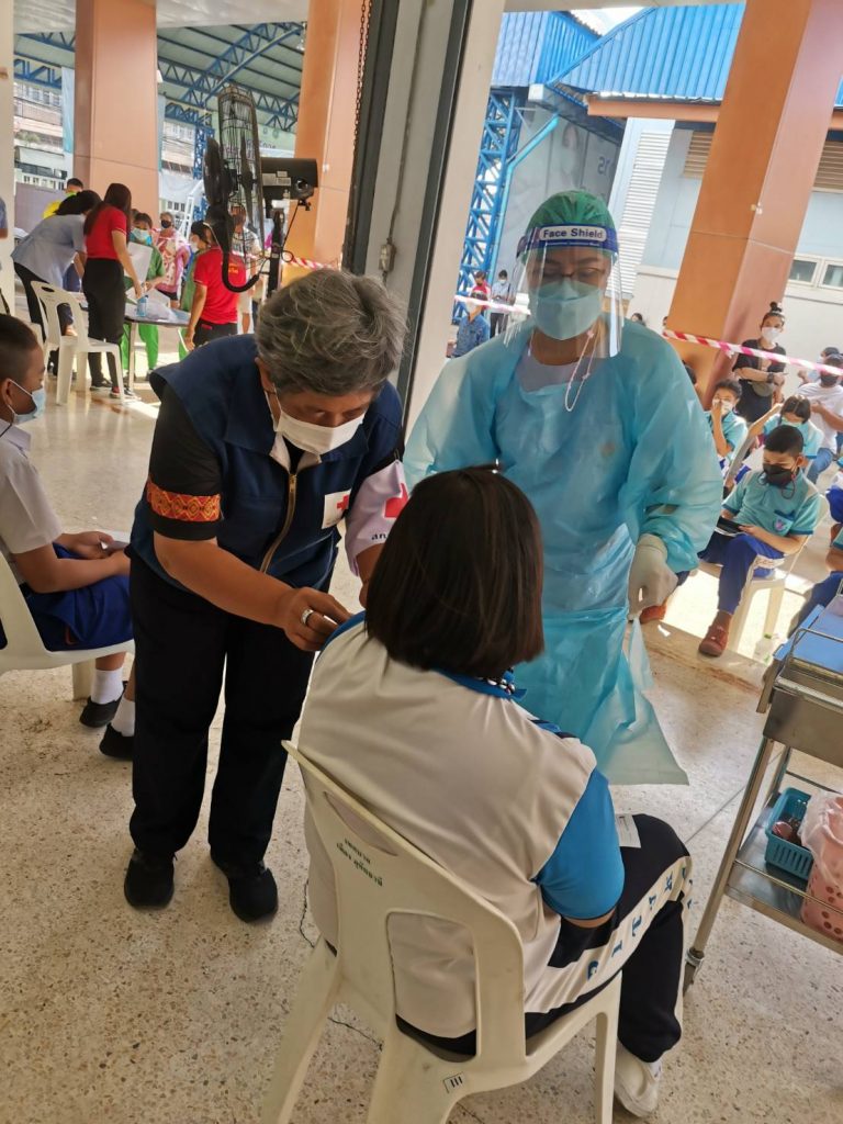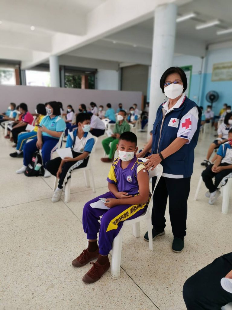 วันที่ 16 พฤศจิกายน 2564 นางปิติมา รักพานิชมณี นายกเหล่ากาชาดจังหวัดอุทัยธานี มอบหมายให้ สมาชิกเหล่ากาชาดจังหวัดอุทัยธานี ลงพื้นที่ช่วยปฏิบัติงาน ร่วมกับหน่วยงานในพื้นที่บริการฉีดวัคซีนให้แก่ประชาชนทั่วไป โดยฉีดวัคซีน ไฟเซอร์ เข็ม 2(เด็กนักเรียน) จำนวน 350 ราย ประชาชนทั่วไป เข็ม 1 (แอสตร้าเซเนก้า)จำนวน 80 ราย , ฉีดวัดซีน เข็ม 2 (แอสตร้าเซเนก้า) ประชาชนทั่วไป จำนวน 120 ราย โดยมีอาสาสมัครด้านทั่วไปร่วมปฏิบัติงานจำนวน 3 ราย ณ จุดบริการฉีดวัคซีนโควิด-19 ณ จังหวัดอุทัยธานี