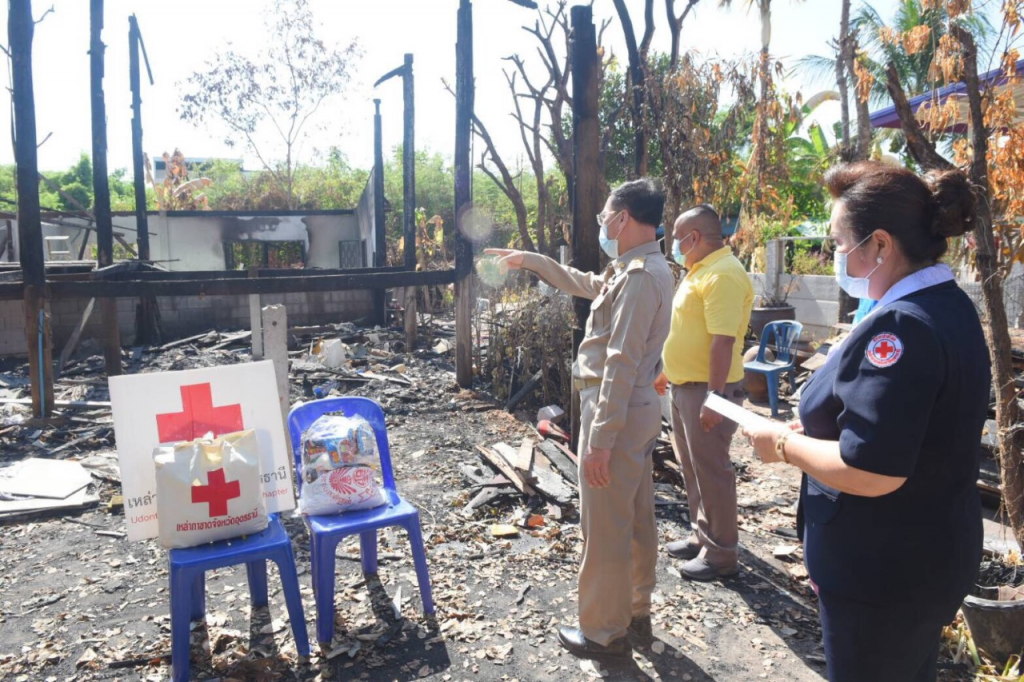 วันที่ 16 พฤศจิกายน 2564 นายสยาม ศิริมงคล ผู้ว่าราชการจังหวัดอุดรธานี/นายกเหล่ากาชาดจังหวัดอุดรธานี มอบหมายให้นายวันชัย จันทร์พร ที่ปรึกษาเหล่ากาชาดจังหวัดอุดรธานี/รองผู้ว่าราชการจังหวัดอุดรธานี เป็นประธานพิธีมอบถุงยังชีพพระราชทานมูลนิธิราชประชานุเคราะห์ฯ และกล่าวให้กำลังใจกับราษฎรผู้ประสบเหตุอัคคีภัย ในการนี้ นางณัฐวดี ลีลาเลิศแล้ว รองนายกเหล่ากาชาดจังหวัดอุดรธานี พร้อมด้วยกรรมการ สมาชิก และเจ้าหน้าที่เหล่ากาชาดจังหวัดอุดรธานี ลงพื้นที่เยี่ยมให้กำลังใจผู้ประสบเหตุอัคคีภัยด้วย โดยมี นายธีระภัทร์ ผิวสวัสธ์ป้องกันและบรรเทาสาธารณภัยจังหวัดอุดรธานี ผู้แทนอำเภอเมืองอุดรธานี เจ้าหน้าที่สาธารณสุขอำเภอ อาสาสมัครสาธารณสุขประจำหมู่บ้าน กำนัน ผู้ใหญ่บ้าน จิตอาสา พร้อมหน่วยงานที่เกี่ยวข้องเข้าร่วมพิธี ซึ่งเหล่ากาชาดจังหวัดอุดรธานี เบื้องต้นมอบเงินช่วยเหลือ 5,000 บาท พร้อมถุงยังชีพ และ พัฒนาสังคมและความมั่นคงของมนุษย์จังหวัดอุดรธานี มอบเงินช่วยเหลือ 3,000 บาท ป้องกันและบรรเทาสาธารณภัย มอบชุดเครื่องอุปโภคบริโภค ให้กับผู้ประสบภัย ณ บ้านเลขที่ 157 หมู่ที่ 6 ตำบลหมากแข้ง อำเภอเมืองอุดรธานี จังหวัดอุดรธานี