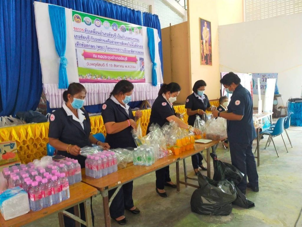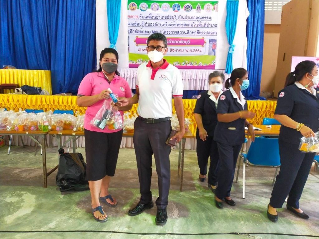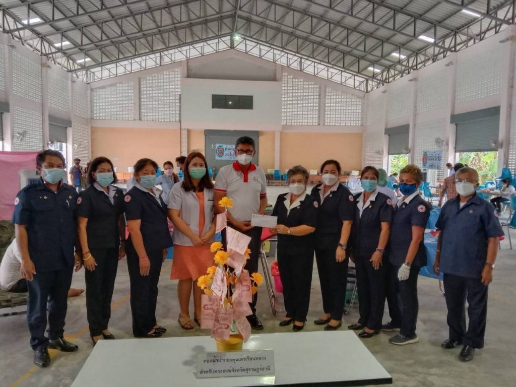 วันอังคารที่ 26 ตุลาคม พ.ศ. 2564นางอุรสา จินโต นายกเหล่ากาชาดจังหวัดสุราษฎร์ธานี มอบหมายให้ ที่ปรึกษา/กรรมการ/สมาชิกเหล่ากาชาดจังหวัดสุราษฎร์ธานีและ ธนาคารเลือด โรงพยาบาลสุราษฎร์ธานีร่วมกับ อำเภอชัยบุรี และสาธารณสุขอำเภอชัยบุรี จัดกิจกรรมรับบริจาคโลหิต ดวงตา และอวัยวะ”บริจาคโลหิตช่วยเหลือผู้ป่วย ในช่วงภาวะวิกฤต COVID-19″ เพื่อเป็นการจัดหาโลหิตสำหรับใช้ในการรักษาผู้ป่วยของโรงพยาบาลในจังหวัดสุราษฎร์ธานี ทั้ง 19 อำเภอ