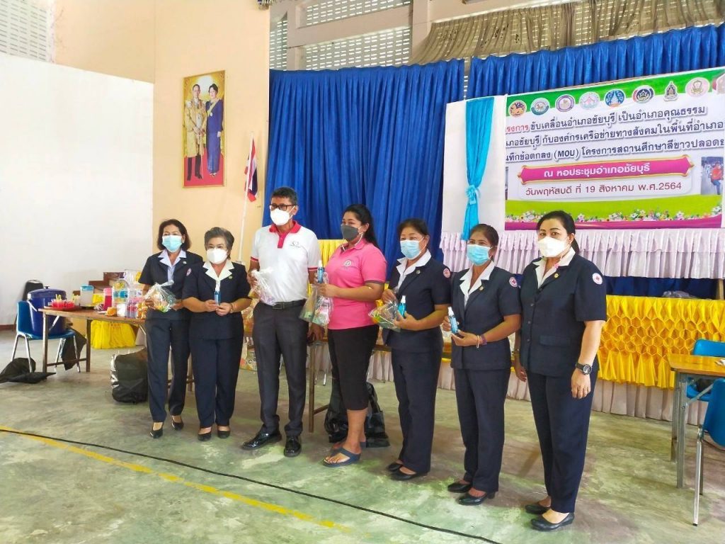 โดยมี นายสุกิจ มีพริ้ง นายอำเภอชัยบุรีหัวหน้าส่วนราชการ เจ้าหน้าที่สาธารณสุขอำเภอชัยบุรีกำนัน ผู้ใหญ่บ้านและประชาชนในพื้นที่ ร่วมกิจกรรม ณ ศาลาประชาคม ที่ว่าการอำเภอชัยบุรีอำเภอชัยบุรี จังหวัดสุราษฎร์ธานี