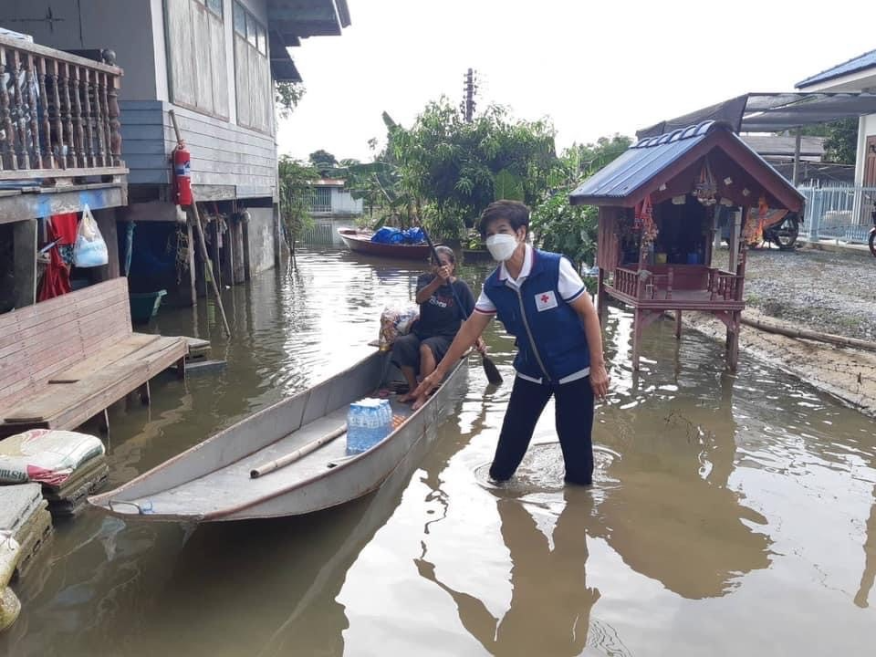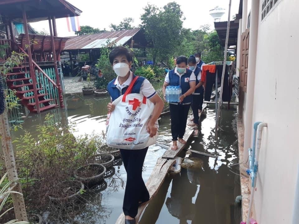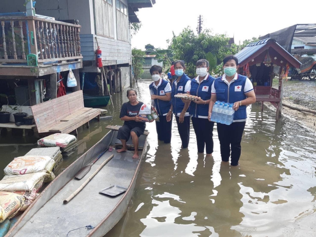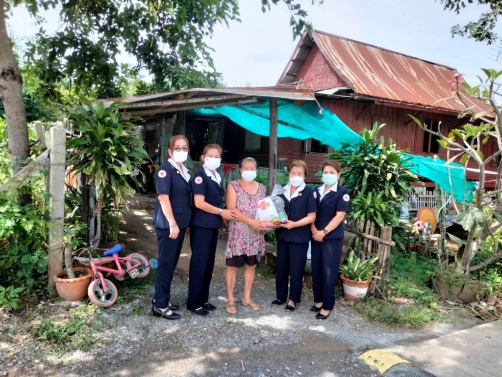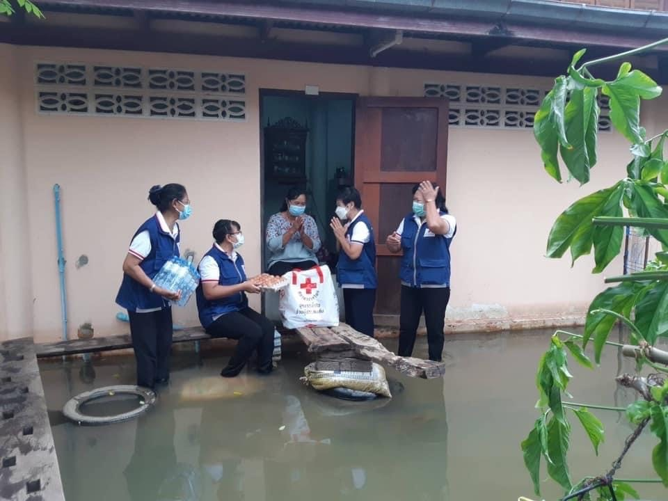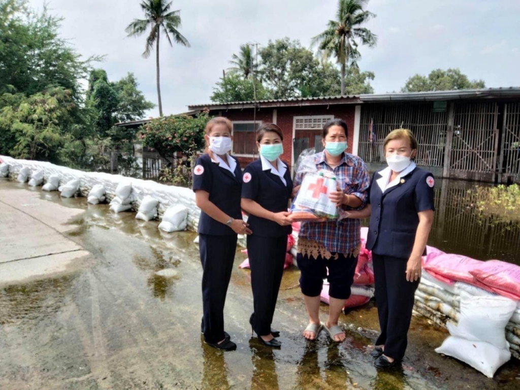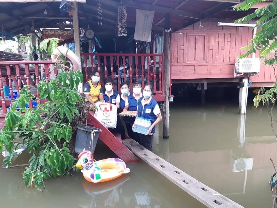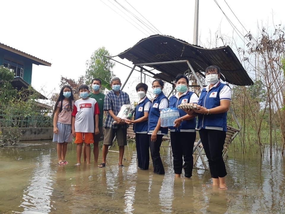 โดยเหล่ากาชาดจังหวัดสุพรรณบุรี มอบเครื่องอุปโภค-บริโภค รายละ 1 ชุด ณ อ.บางปลาม้า จ.สุพรรณบุรี