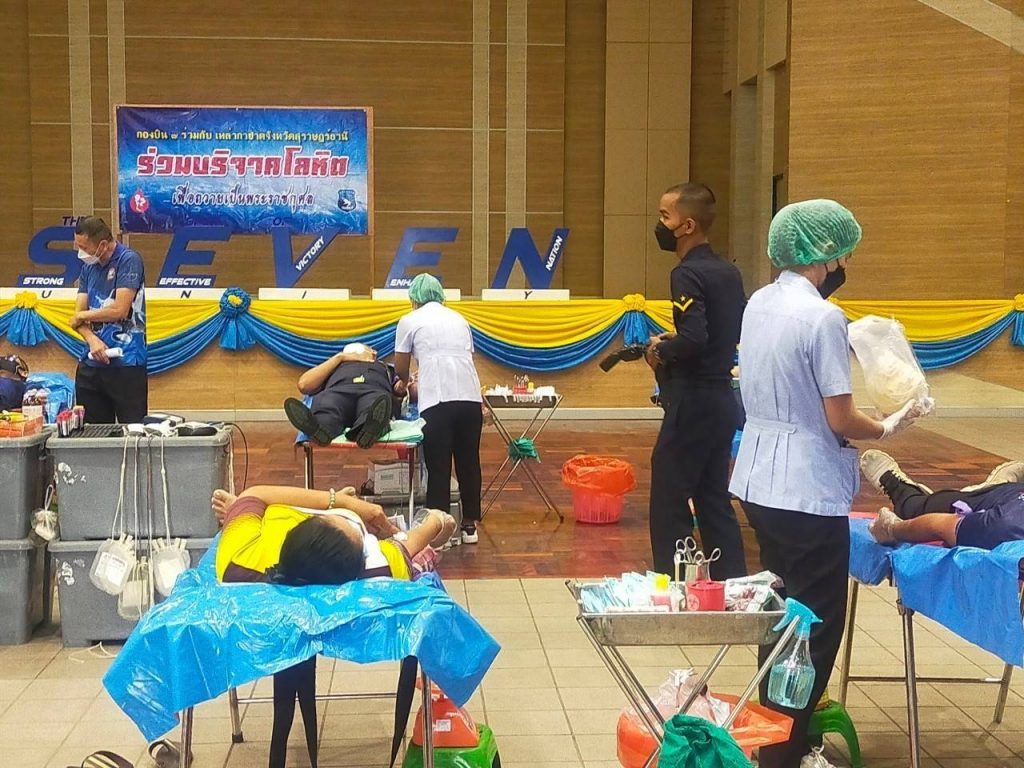 วันที่ 3 พฤศจิกายน พ.ศ. 2564นางอุรสา จินโต นายกเหล่ากาชาดจังหวัดสุราษฎร์ธานี มอบหมายให้ ที่ปรึกษา/กรรมการ/สมาชิกเหล่ากาชาดจังหวัดสุราษฎร์ธานีและ ธนาคารเลือด โรงพยาบาลสุราษฎร์ธานีร่วมกับ กองบิน 7 สุราษฎร์ธานี