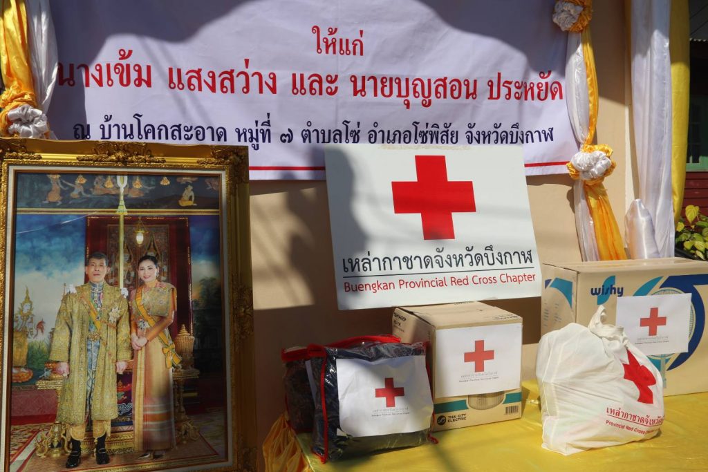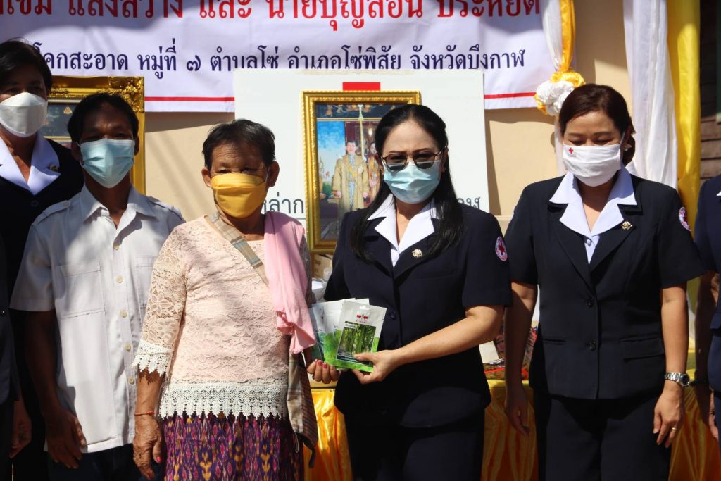 วันที่ 4 พฤศจิกายน 2564 นายสนิท ขาวสอาด ผู้ว่าราชการจังหวัดบึงกาฬ/นายกเหล่ากาชาดจังหวัดบึงกาฬ มอบหมายให้ นางวาทิณี โฆษาศิวิไลซ์ รองนายกเหล่ากาชาดจังหวัดบึงกาฬ นางเฉลิมศรี บุญมาก รองนายกเหล่ากาชาดจังหวัดบึงกาฬ