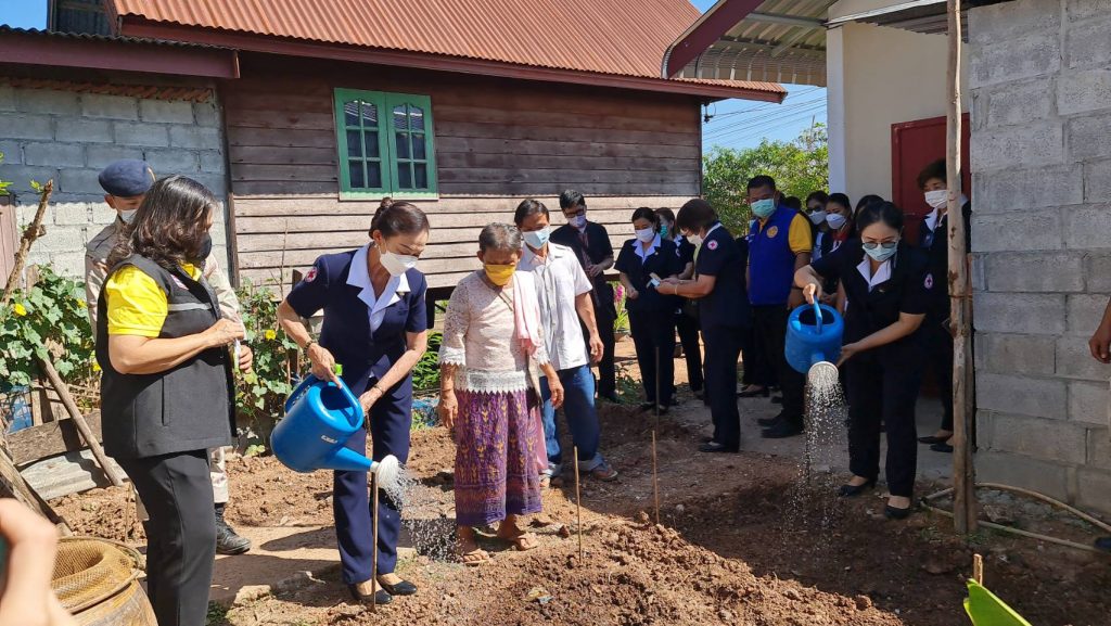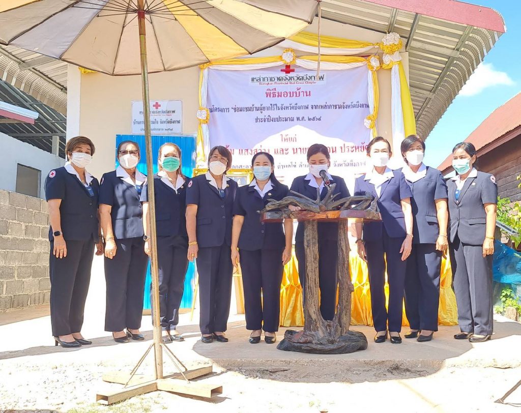นางคำหมุน ยอดเทพ รองนายกเหล่ากาชาดจังหวัดบึงกาฬ ร่วมด้วยกรรมการและสมาชิกเหล่ากาชาดอำเภอโซ่พิสัย ปกครองอำเภอโซ่พิสัย พัฒนาสังคมและความมั่นคงของมนุษย์จังหวัดบึงกาฬ สมาชิกสภาองค์การบริหารส่วนจังหวัดบึงกาฬ ผู้อำนวยการโรงเรียนบ้านโคกสะอาด ผู้กำกับการตำรวจภูธรอำเภอโซ่พิสัย อาสาสมัครประจำหมู่บ้าน ประชาชน พิธีมอบบ้านตามโครงการ “ซ่อมแซมบ้านผู้ยากไร้ในจังหวัดบึงกาฬ จากเหล่ากาชาดจังหวัดบึงกาฬ” ประจำปีงบประมาณ 2564 โดยได้รับการสนับสนุนงบประมาณจากเหล่ากาชาดจังหวัดบึงกาฬเป็น จำนวนเงิน 50,000 บาท ร้านเหรียญทองบิ๊กโฮม 3,220 บาท ผู้ใหญ่บ้านและประชาชนอำเภอโซ่พิสัย จำนวน 24,500 บาท และได้ร่วมปลูกพืชผักสวนครัวซึ่งเป็นกิจกรรมการแก้ปัญหาความยากจนแบบบูรณาการ ภายใต้โครงการสร้างอาชีพสร้างรายได้คลายทุกข์ผู้ยากไร้ จังหวัดบึงกาฬ (MOU) ได้รับความร่วมมือร่วมใจจาก อำเภอเมืองบึงกาฬ กำนัน ผู้ใหญ่บ้าน และหน่วยงานที่เกี่ยวข้อง ในการร่วมสร้างบ้านให้กับ ราย นางเข้ม แสงสว่าง บ้านเลขที่ 4 หมู่ 7 ตำบลโซ่พิสัย อำเภอโซ่พิสัย จังหวัดบึงกาฬ