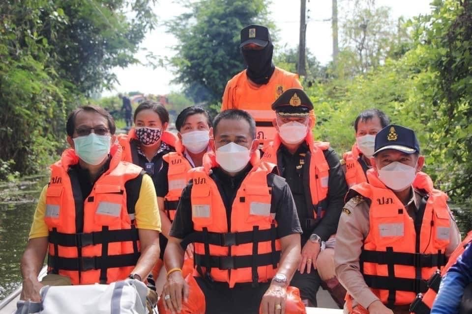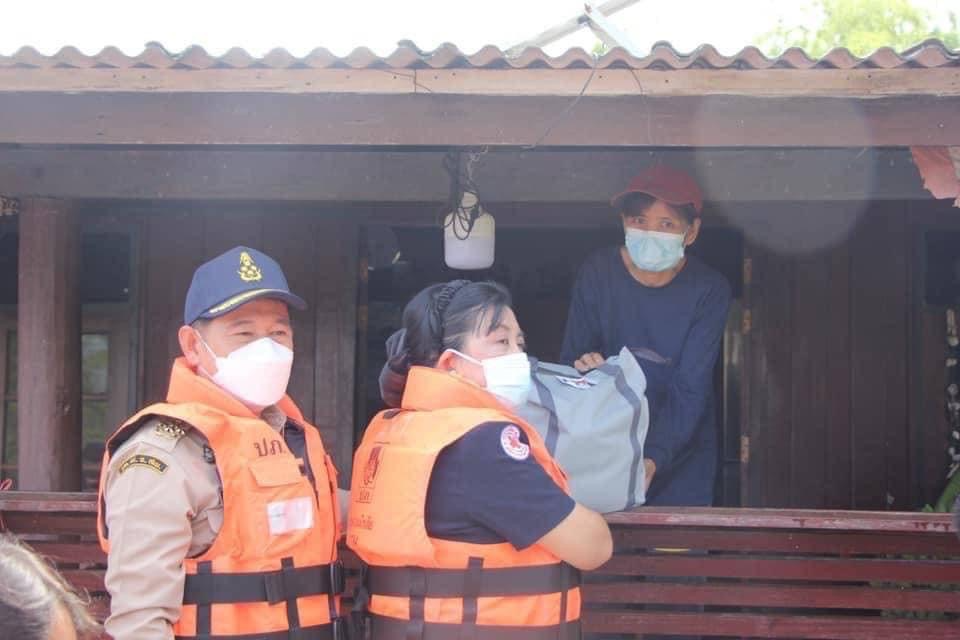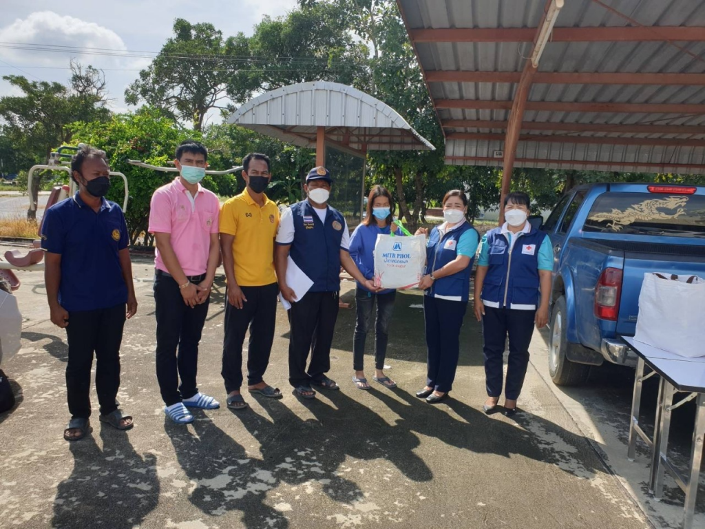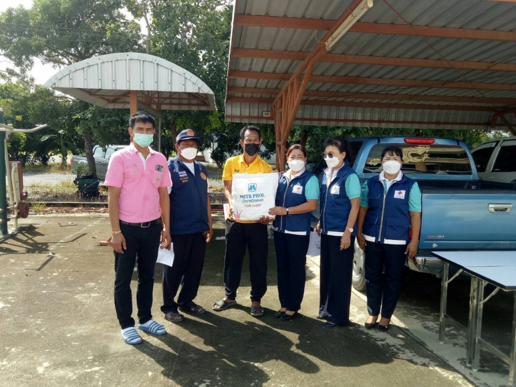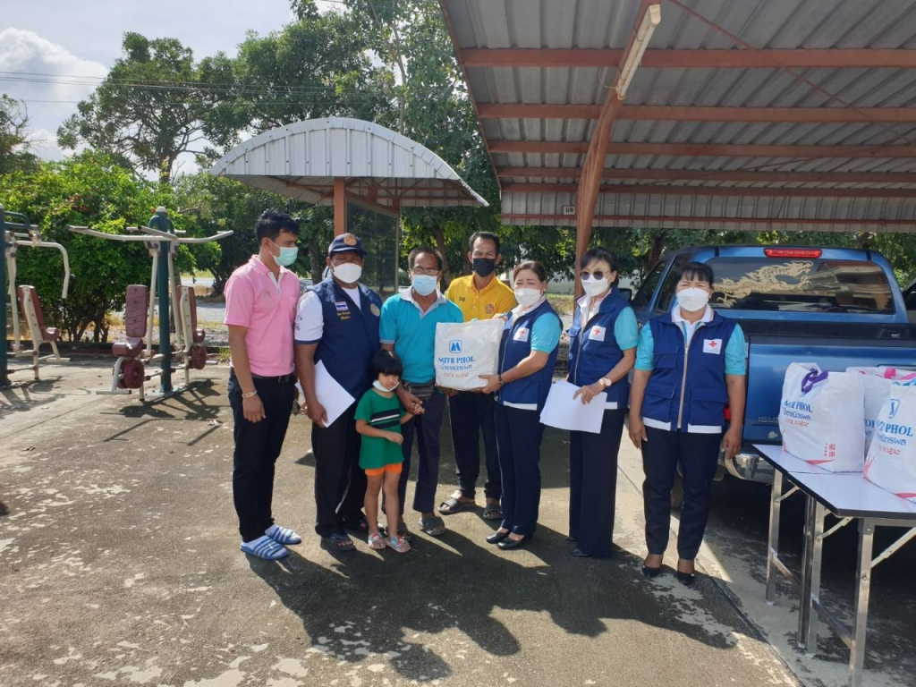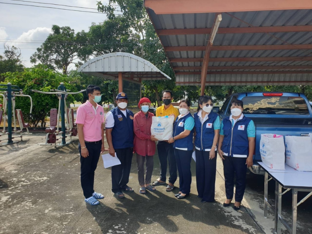 โดยเหล่ากาชาดจังหวัดสุพรรณบุรี มอบเครื่องอุปโภค-บริโภค รายละ 1 ชุด ณ อ.ศรีประจันต์ จ.สุพรรณบุรี
