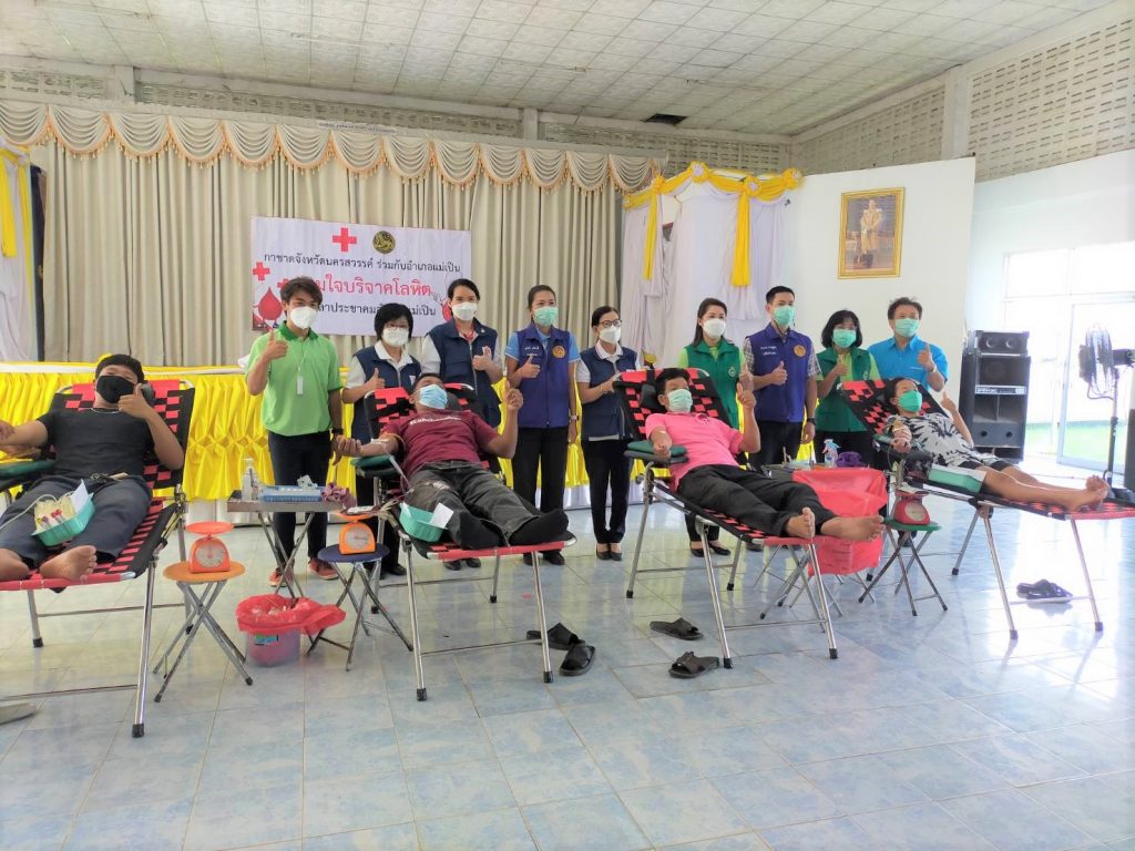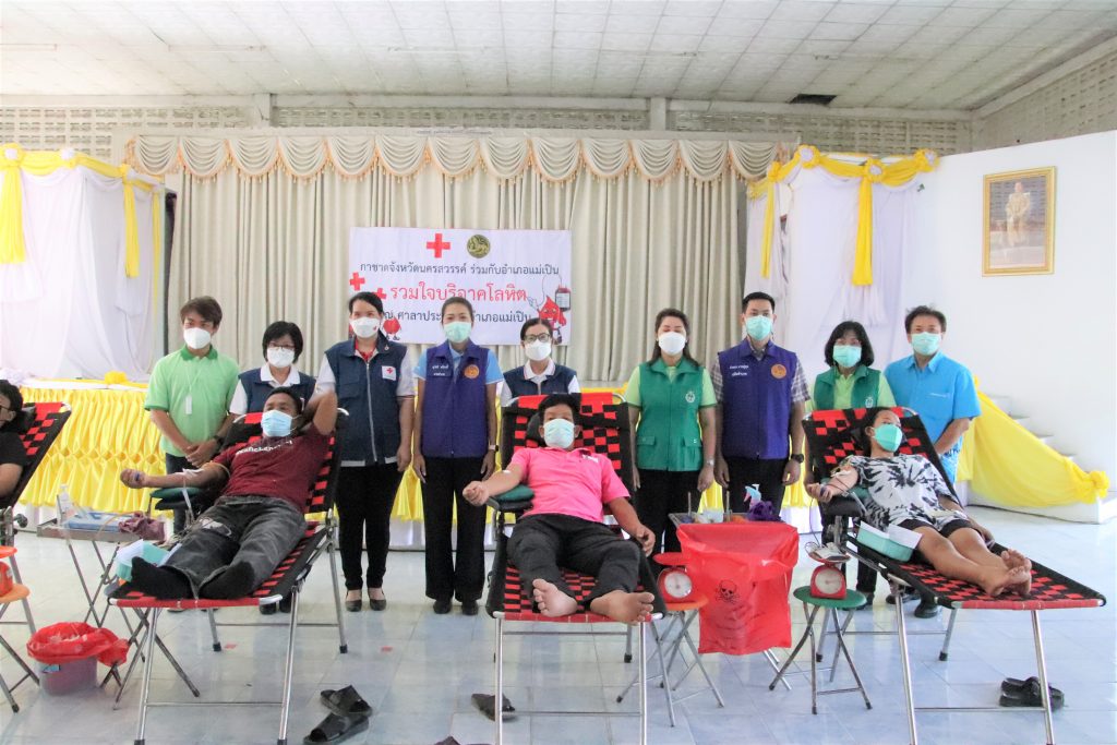 ทั้งนี้ เหล่ากาชาดจังหวัดนครสวรรค์ สนับสนุนค่าอาหารผู้บริจาคโลหิต ดวงตา และอวัยวะ จำนวน 3,000 บาท ณ หน่วยรับบริจาคโลหิตเคลื่อนที่ ของโรงพยาบาลสวรรค์ประชารักษ์ จังหวัดนครสวรรค์ ศาลาประชาคมอำเภอแม่เปิน จังหวัดนครสวรรค์