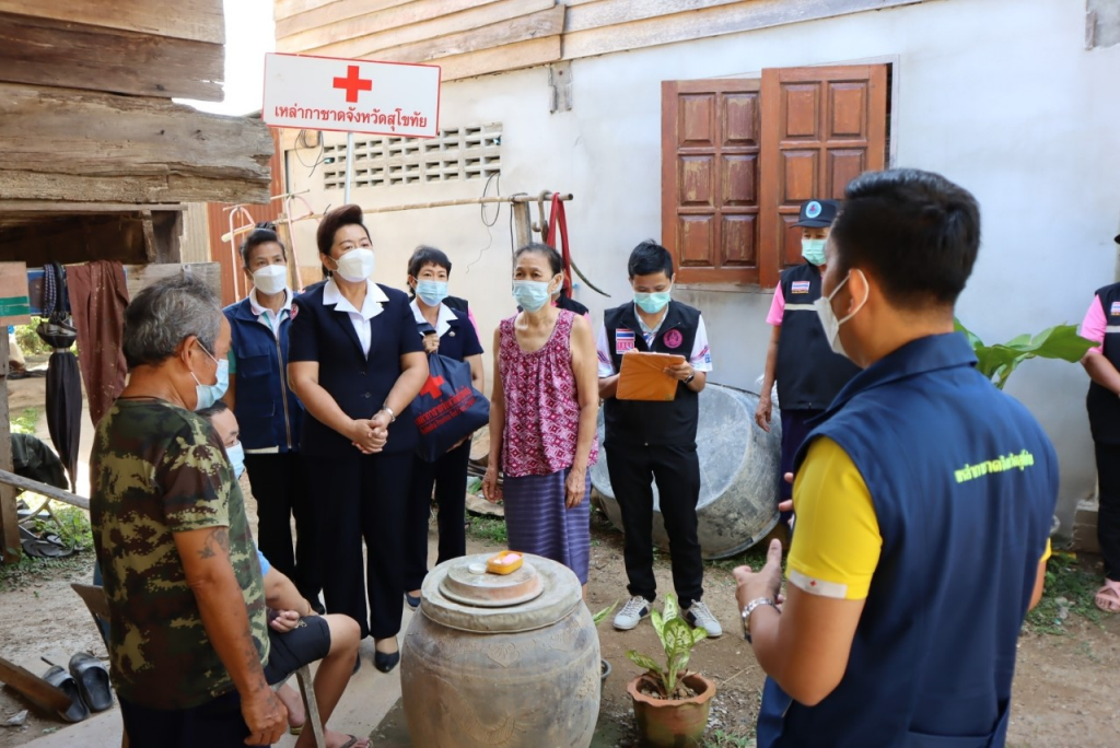 วันที่ 17 พฤศจิกายน 2564 นางกนกพร พรรณเทวี นายกเหล่ากาชาดจังหวัดสุโขทัย พร้อมด้วยนายอำเภอศรีสัชนาลัย กรรมการกิ่งกาชาดอำเภอศรีสัชนาลัย เจ้าหน้าที่พัฒนาสังคมและความมั่นคงของมนุษย์จังหวัดสุโขทัย เจ้าหน้าที่สาธารณสุขและผู้นำชุมชน ลงพื้นที่เยี่ยมผู้เปราะบางทางสังคม นายเจษฏา ใจมา อายุ 39 ปี พิการทางการเคลื่อนไหว โดยเหล่ากาชาดจังหวัดสุโขทัย ได้มอบถุุงธารน้ำใจ ช่วยเหลือเบื้องต้น ณ ตำบลป่างิ้ว อำเภอศรีสัชนาลัย จังหวัดสุโขทัย