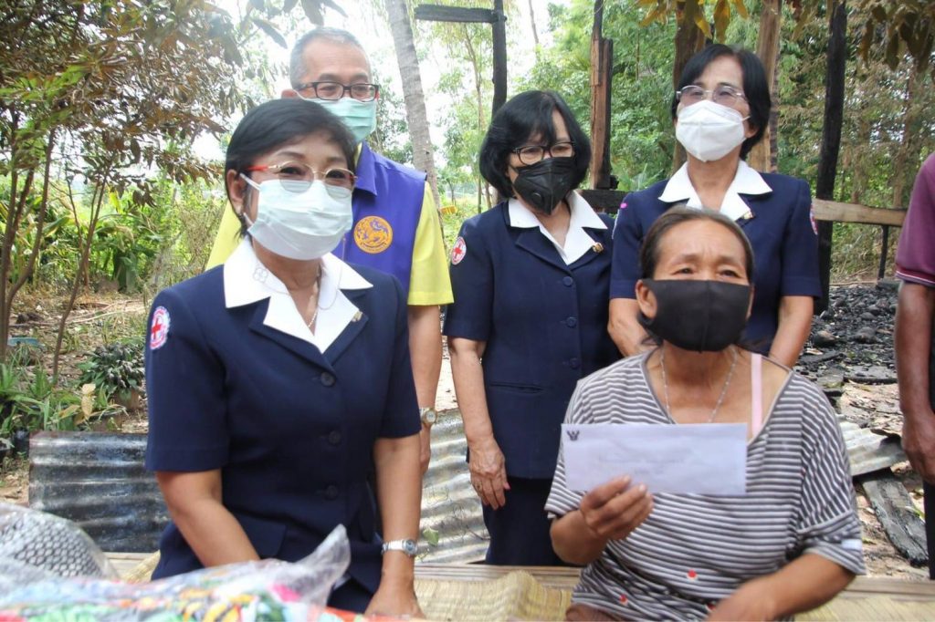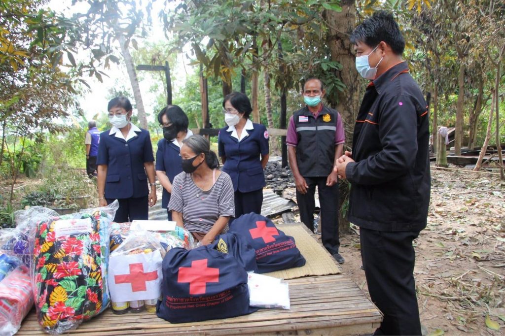 วันที่ 4 พฤศจิกายน 2564 นางศลิษา ภิรมย์รัตน์ นายกเหล่ากาชาดจังหวัดอุบลราชธานี มอบหมายสมาชิกเหล่ากาชาดจังหวัดอุบลราชธานี (อำเภอน้ำยืน) ลงพื้นที่ บรรเทาทุกข์เหตุอัคคีภัย กรณี ครอบครัว นายสำรอง ปัจมูล บ้านเลขที่ 197 หมู่ 10 บ้านจันลา ตำบลโดมประดิษฐ์ อำเภอน้ำยืน จังหวัดอุบลราชธานี เหล่ากาชาดจังหวัดอุบลราชธานี มอบเงินช่วยเหลือ จำนวน 5,000 บาท พร้อมด้วยถุงยังชีพและผ้าห่ม โดยมีนายวิทยา มุลน้อยสุ นายอำเภอน้ำยืน, นายมนต์สง่า ลีลาศสง่างาม หัวหน้าสำนักงานป้องกันและบรรเทาสาธารณภัยจังหวัดอุบลราชธานี ร่วมมอบและให้ความช่วยเหลือ ซึ่งกิจกรรมในครั้งนี้ได้จัดขึ้นภายใต้มาตรการป้องกันการแพร่ระบาดของโรคติดเชื้อไวรัสโคโรนา 2019 ด้วยการสวมหน้ากากอนามัย และเว้นระยะห่าง