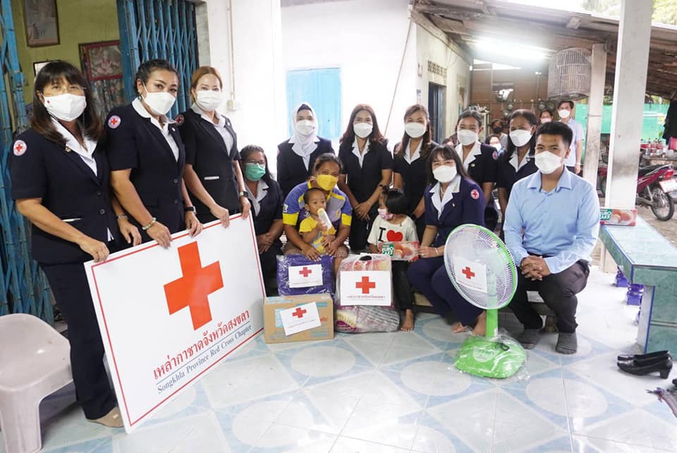 วันที่ 3 พฤศจิกายน 2564 นางดาเรศ จิตรัตน์ นายกเหล่ากาชาดจังหวัดสงขลา พร้อมด้วยนางพวงศรี นุ่นชูคันธ์ นางเยาวลักษณ์ จันทรปาน รองนายกเหล่ากาชาดจังหวัดสงขลา กรรมการ/สมาชิกเหล่ากาชาดจังหวัดสงขลา นายกริชชัย ภู่ฉุน นายอำเภอกระแสสินธุ์ ปลัดอําเภอ สาธารณสุขอำเภอ ผู้นำท้องที่ และ อสม. ร่วมตรวจเยี่ยมพร้อมมอบสิ่งของให้กำลังใจแก่ เด็กหญิงหนึ่งฤทัย สวยงาม ซึ่งเป็นคนไข้ในพระราชานุเคราะห์ มีความพิการทางด้านเคลื่อนไหว ณ บ้านเลขที่ 114/2 หมู่ 1 ตำบลโรง อำเภอกระแสสินธุ์ จังหวัดสงขลา