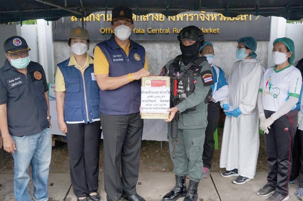 วันที่ 13 พฤศจิกายน 2564 นายภิรมย์ นิลทยา ผู้ว่าราชการจังหวัดยะลา พร้อมด้วยนางทิพยวรรณ นิลทยา นายกเหล่ากาชาดจังหวัดยะลา และส่วนราชการที่เกี่ยวข้อง ร่วมออกตรวจเยี่ยมและให้กำลังใจเจ้าหน้าที่ผู้ปฏิบัติงานในการบริการจัดฉีดวัคซีนเชิงรุกแก่ประชาชนที่ยังไม่ได้รับวัคซีน เพื่อสร้างภูมิคุ้มกันหมู่ในพื้นจังหวัดยะลา ประจำจุดตรวจ 4 จุด ประกอบด้วย