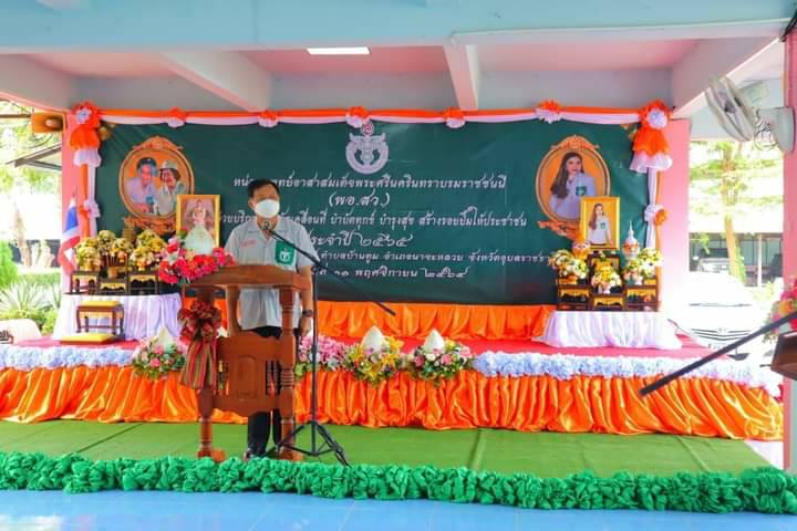 วันที่ 11 พฤศจิกายน 2564 นางศลิษา ภิรมย์รัตน์ นายกเหล่ากาชาดจังหวัดอุบลราชธานี มอบหมายให้คณะกรรมการและสมาชิกเหล่ากาชาดจังหวัดอุบลราชธานี ร่วมกิจกรรม พอ.สว. กับหน่วยเคลื่อนที่ พอ.สว. สำนักงานสาธารณสุขจังหวัดอุบลราชธานี พัฒนาสังคมและความมั่งคงของมนุษย์ จังหวัดอุบลราชธานี โดยมีกิจกรรมตรวจสุขภาพ บริการตัดผม ให้แก่ประชาชนที่มาใช้บริการตรวจสุขภาพ และผู้มาร่วมงาน และได้ออกหน่วยเยียมผู้ป่วยติดเตียง จำนวน 6 ราย นายสำพิน พวงจำปี 79 ม.3 ต.บ้านตูม อ.นาจะหลวย พิการ,ติดเตียง/นางบุญยืน สีดำ 17 ม.3 ต.บ้านตูม อ.นาจะหลวย สูงอายุ,ติดเตียง/นายอนุรักษ์ เวียงคำ 83 ม.11 ต.บ้านตูม อ.นาจะหลวยพิการ,ติดเตียง/นายสีนวล พัดทาบ 39 ม.11ต.บ้านตูม อ.นาจะหลวย สูงอายุ,มะเร็ง/นางฮอง สิมมา 29 ม.14 ต.บ้านตูม อ.นาจะหลวย สูงอายุ,ติดเตียง ,หลอดเลือดสมอง/นายมนูญ พรมศรี 61 ม.14 ต.บ้านตูม อ.นาจะหลวย พิการตาบอด เบาหวาน ณ โรงเรียนบ้านดอน ตำบลบ้านตูม อำเภอนาจะหลวย จังหวัดอุบลราชธานี โดยมีการมอบชุดอุปโภค-บริโภค โดยมีนายศุภศิษย์ กอเจริญยศ รองผู้ว่าราชการจังหวัดอุบลราชธานี เป็นประธานในพิธีและกิจกรรมในครั้งนี้จัดขึ้นภายใต้มาตรการป้องกันการแพร่ระบาดของไวรัสโคโรน่า 2019 ด้วยการสวมหน้ากากอนามัยและการเว้นระยะห่าง