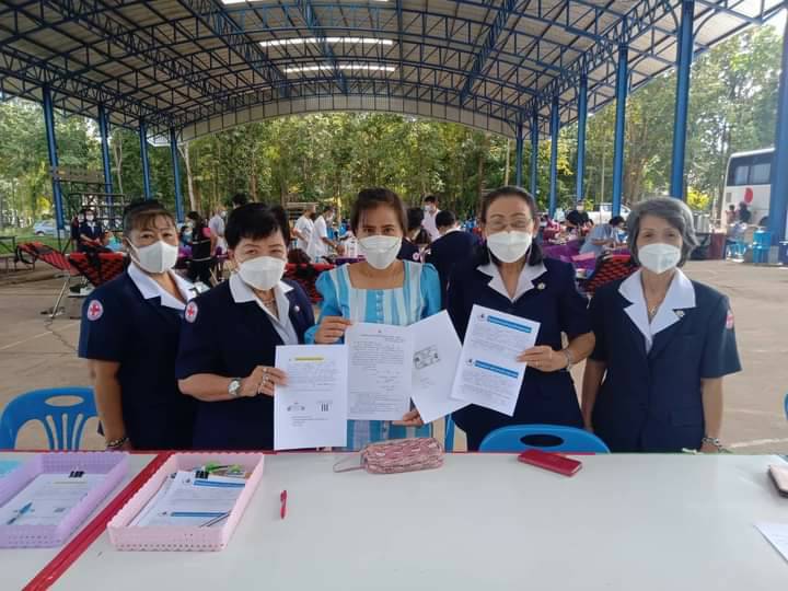วันที่ 11 พฤศจิกายน 2564 นางศลิษา ภิรมย์รัตน์ นายกเหล่ากาชาดจังหวัดอุบลราชธานี มอบหมายนางพชร เตชะตานลท์ รองนายกกิ่งกาชาดอำเภอเดชอุดม/นางไพจิตต์ แก้วมีศรี กรรมการกิ่งกาชาดอำเภอเดชอุดม/นางหนูกร บัวงาม กรรมการกิ่งกาชาดอำเภอเดชอุดม/นางชวนชม กุลเซ็นต์ กรรมการกิ่งกาชาดอำเภอเดชอุดม/นางสุพรรณี บัวกิ่ง กรรมการกิ่งกาชาดอำเภอเดชอุดม/นางนงลักษณ์ มิ่งชัย กรรมการกิ่งกาชาดอำเภอเดชอุดม/นางกาญจนวรรณ กอมณี กรรมการกิ่งกาชาดอำเภอเดชอุดม/นางอารยา สายอุทา กรรมการกิ่งกาชาดอำเภอเดชอุดม/นางสมพร ตั้งทวีสุข กรรมการกิ่งกาชาดอำเภอเดชอุดม ออกหน่วยรับบริจาคโลหิต ดวงตา อวัยวะ และร่างกาย ร่วมกับโรงพยาบาลสรรพสิทธิประสงค์ จ.อุบลราชธานี ณ โรงเรียนน้ำขุ่นวิทยา อำเภอน้ำขุ่น จังหวัดอุบลราชธานี บริจาคโลหิตทั้งหมด 68 ราย ผู้ที่ไม่ผ่าน 11 ราย ผู้ที่ผ่าน 57 ราย กรุ๊ป O 27 ราย กรุ๊ป A 15 รายกรุ๊ป B 17 ราย กรุ๊ป A,B 9 รายร่างกาย 2 รายดวงตา 1 รายอวัยวะ 1 รายสาเหตุที่ไม่ผ่าน 1.ความเข้มข้นไม่ถึงเกณฑ์/ต่ำกว่าเกณฑ์ จำนวน 6 ราย2.ความดันโลหิตสูง/ต่ำ เบาหวาน ไทรอยด์ เเละโรคอื่นๆ จำนวน 3 ราย3.ฉีดวัคซีน จำนวน 2 ราย4.Alcohol จำนวน 2 ราย และกิจกรรมในครั้งนี้จัดขึ้นภายใต้มาตรการป้องกันการแพร่ระบาดของไวรัสโคโรน่า 2019 ด้วยการสวมหน้ากากอนามัยและการเว้นระยะห่าง