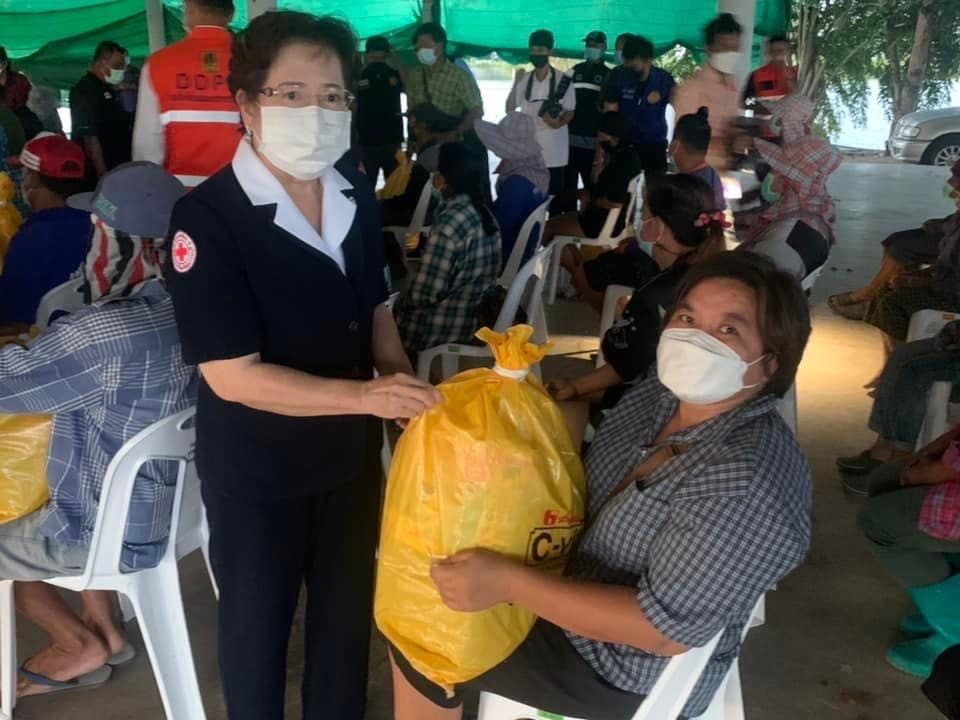 วันที่ 17 พฤศจิกายน 2564 นางนภัสสร สุวรรณประทีป นายกเหล่ากาชาดจังหวัดสุพรรณบุรี มอบหมายให้ นางเยาวลักษณ์ วงศ์วีรกูล ที่ปรึกษาเหล่ากาชาดจังหวัด นางวิภารัศมิ์ มหาดำรงค์วัฒน์ ผู้ช่วยนายกเหล่ากาชาดจังหวัด พร้อมด้วยที่ปรึกษาและสมาชิกเหล่ากาชาดจังหวัด ร่วมลงพื้นที่ให้กำลังใจผู้ประสบอุทกภัย มอบถุงยังชีพ จำนวน 150 ถุง มอบเรือพร้อมพาย จำนวน 23 ลำ โดยมี นายณัฐภัทร สุวรรณประทีป ผู้ว่าราชการจังหวัดสุพรรณบุรี เป็นประธาน ณ ศาลาหลวงเตี่ย หมู่ที่ 13 บ้านท่าข้าม ต.บางตาเถร อ.สองพี่น้อง จ.สุพรรณบุรี
