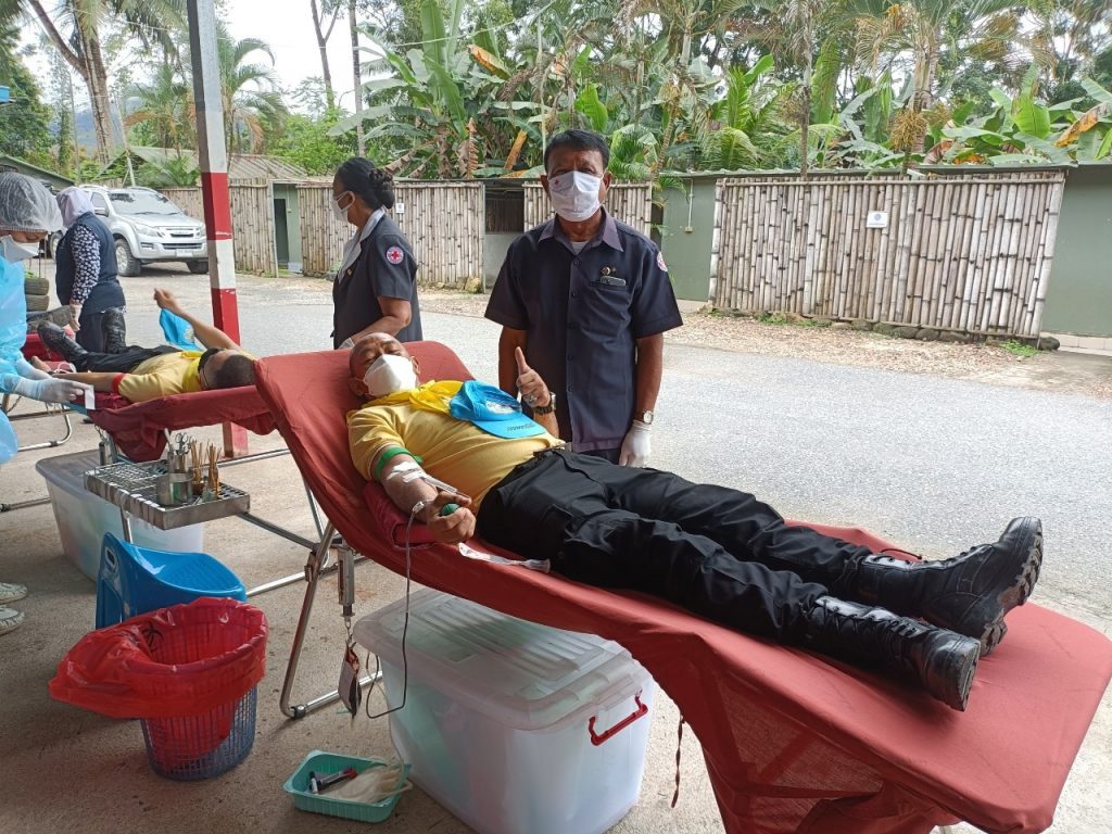 วันที่ 18 พฤศจิกายน 2564 ผศ.ดร.ทิพยวรรณ นิลทยา นายกเหล่ากาชาดจังหวัดยะลา มอบหมายให้คณะกรรมการและสมาชิกเหล่ากาชาดจังหวัดยะลา ร่วมกับโรงพยาบาลยะลา และสมาชิกสมาคมแม่บ้านมหาดไทยจังหวัดยะลา ออกหน่วยรับบริจาคโลหิต ตามโครงการ Plus 1 เพิ่มจำนวนครั้ง เพิ่มโลหิต เพิ่มชีวิต (Plus One Blood Donation, More Blood More Liv) ณ กรมทหารพรานที่ 30 ต.ตลิ่งชัน อ.บันนังสตา จ.ยะลา มีผู้เข้าร่วมแสดงความจำนงบริจาคโลหิต จำนวน 60 ราย ผ่านการคัดกรองและสามารถบริจาคโลหิตได้ จำนวน 54 ราย ได้โลหิต 24,300 ซีซี ในโอกาสนี้ขอขอบคุณ ผู้บังคับการกรมทหารพรานที่ 30 ผู้เกี่ยวข้องและผู้ร่วมบริจาคโลหิตทุกท่านที่มีส่วนร่วมในการสนับสนุนการรับบริจาคโลหิตในครั้งนี้