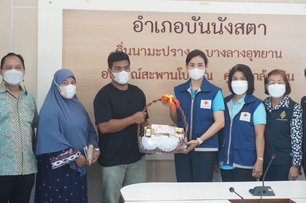 วันที่ 19 พฤศจิกายน 2564 ผศ.ดร.ทิพยวรรณ นิลทยา นายกเหล่ากาชาดจังหวัดยะลา พร้อมด้วย สมาชิกเหล่ากาชาดจังหวัดยะลา สมาชิกสมาคมแม่บ้านมหาดไทยจังหวัดยะลา นายชาคร คงเสรีกุล ป้องกันจังหวัดยะลาและศูนย์ปฏิบัติการช่วยเหลือเยียวยาจังหวัดยะลา ร่วมเยี่ยมให้กำลังใจผู้ได้รับผลกระทบจากเหตุการณ์ความไม่สงบในพื้นที่จังหวัดยะลา เหตุเกิดเมื่อวันที่ 13 สิงหาคม 2564 เวลา 18.50 น. เหตุเกิดบริเวณพื้นที่ ถนนสาย 410 จุดตรวจ/จุดสกัดร้อย.ร.15212(ฐานวัดหลักห้า) หมู่ที่ 2 บ้านหลักห้า ต.สะเตงนอก อ.เมืองยะลา จ.ยะลา เหล่ากาชาดจังหวัดยามอบเงินกระเช้าสุขภาพ เพื่อเป็นขวัญกำลังใจ
